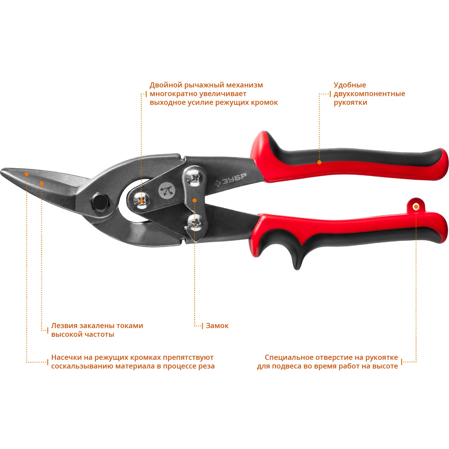 Ножницы по металлу для точного реза листового металла, режущая способность: сталь 0.8 мм, нерж. 0.4 мм