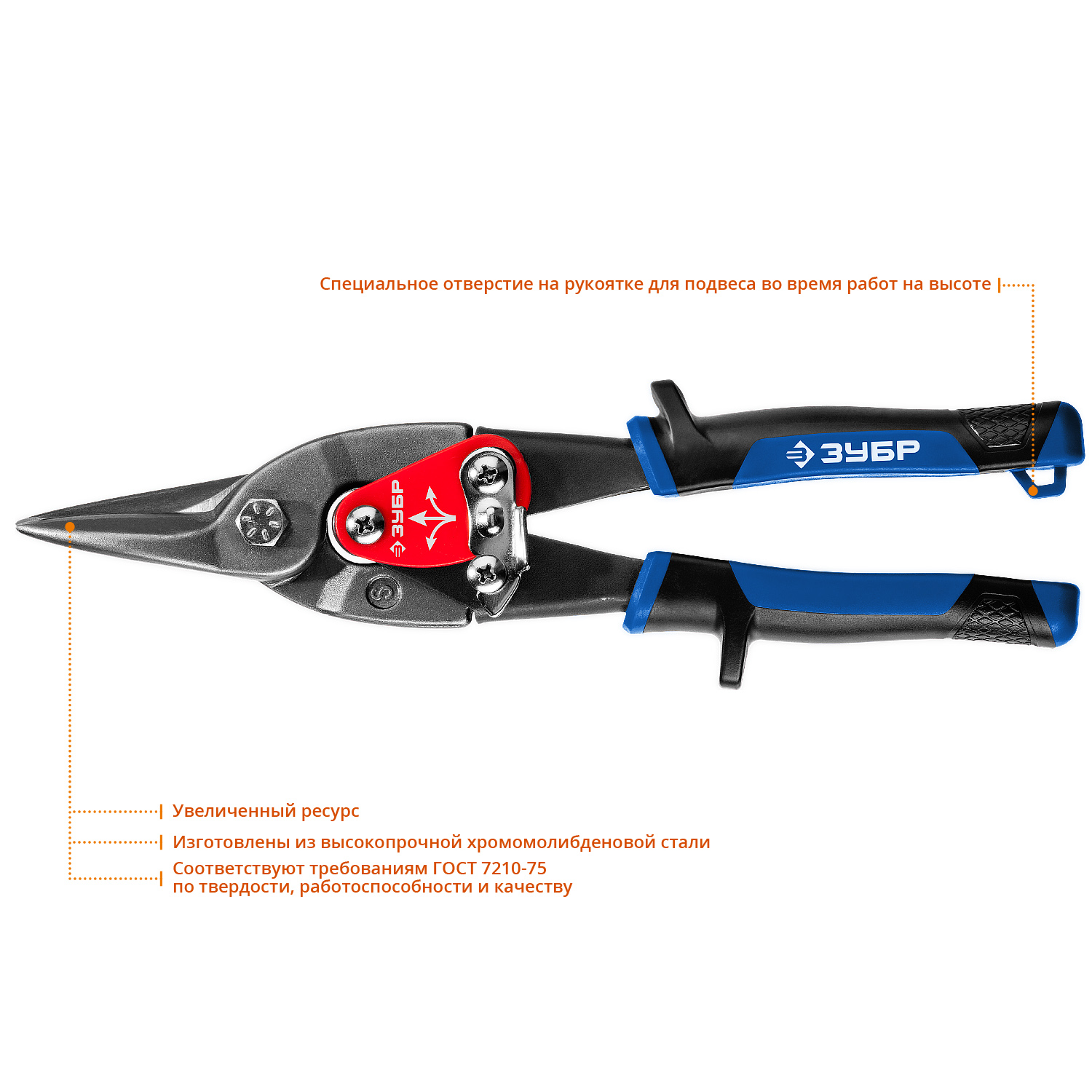 ЗУБР 250 мм, прямые ножницы по металлу, Профессионал (23130-S)