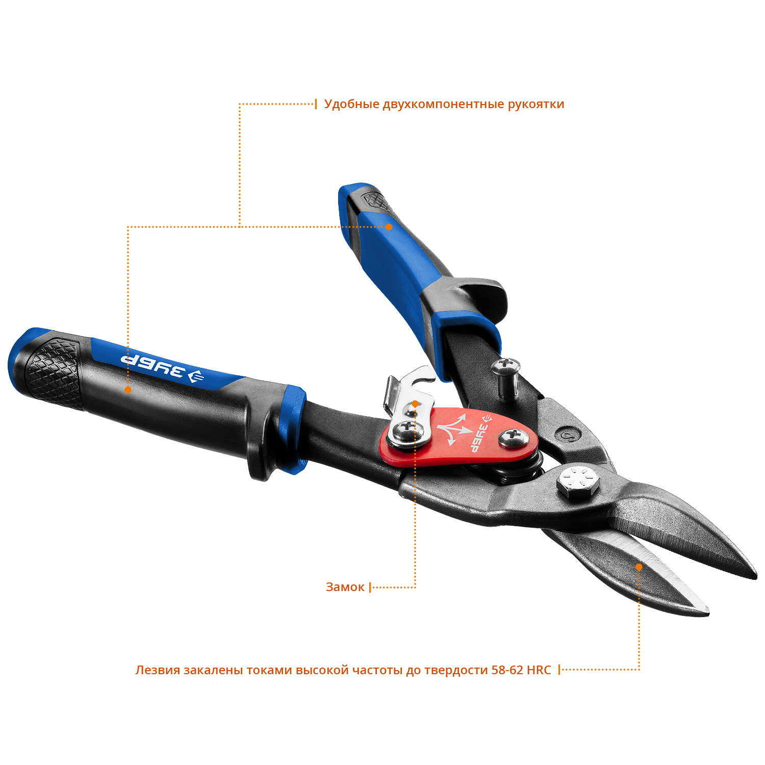 • Лезвия ножниц закалены токами высокой частоты до твёрдости 58 - 62 HRC