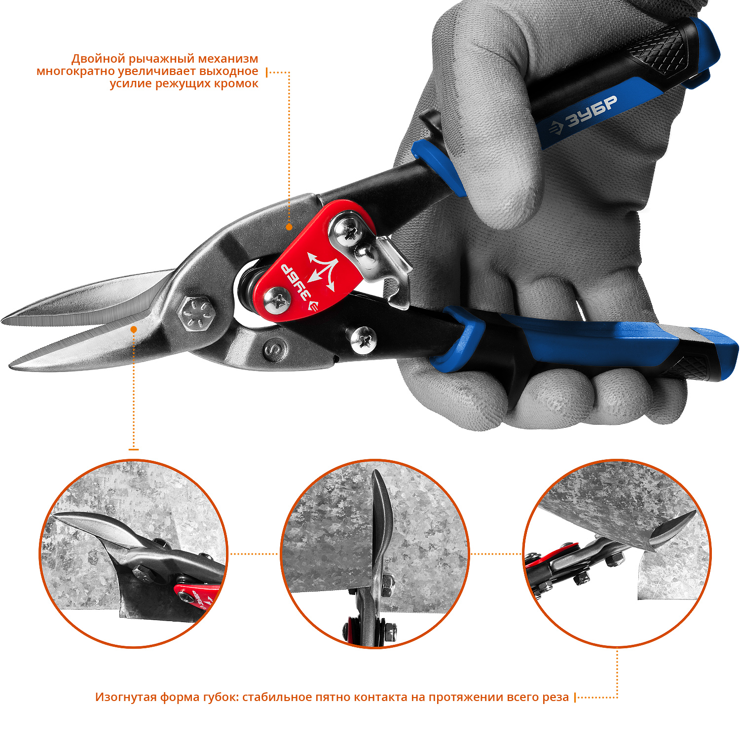• Двойной рычажный механизм многократно увеличивает выходное усилие режущих кромок