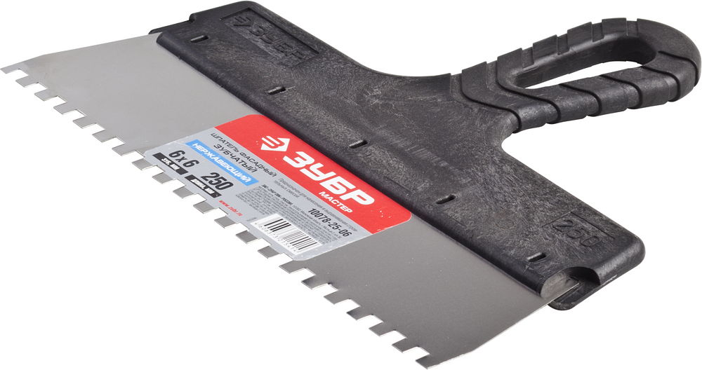 ЗУБР 250 мм, зуб 6 х 6 мм, пластиковая ручка, нержавеющий фасадный шпатель (10078-25-06)