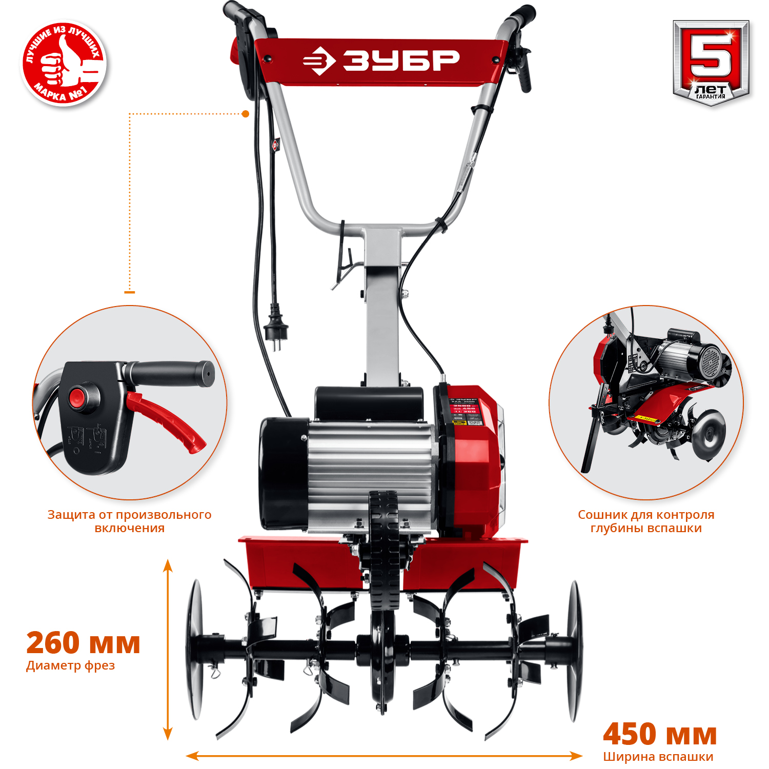 Мощный электрический культиватор с асинхронным двигателем 2500 Вт используется для рыхления и культивации почвы на небольшом садовом участке. Оснащен металлическими фрезами с шириной захвата 45см и обрабатывает почву на глубину до 26 см.