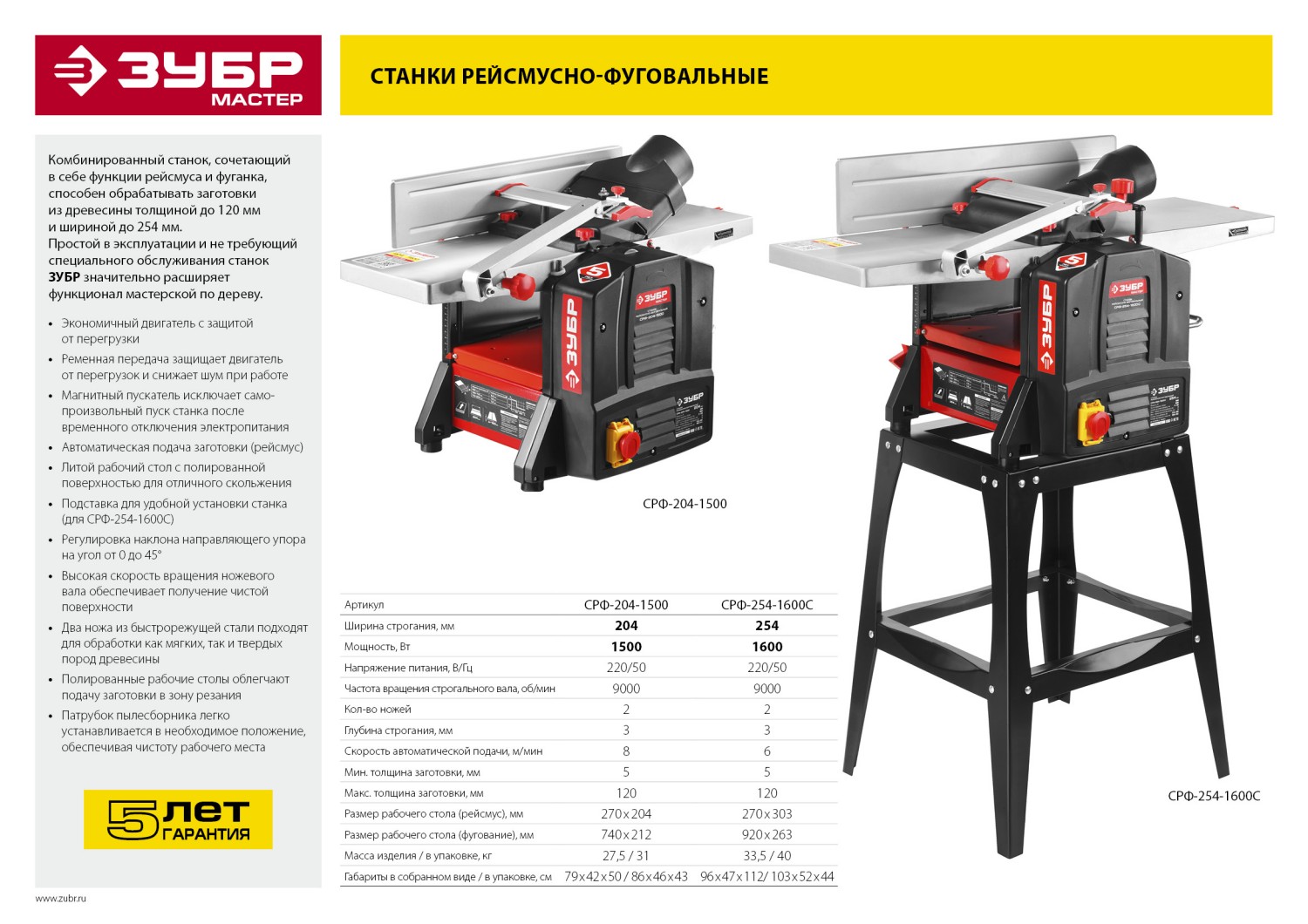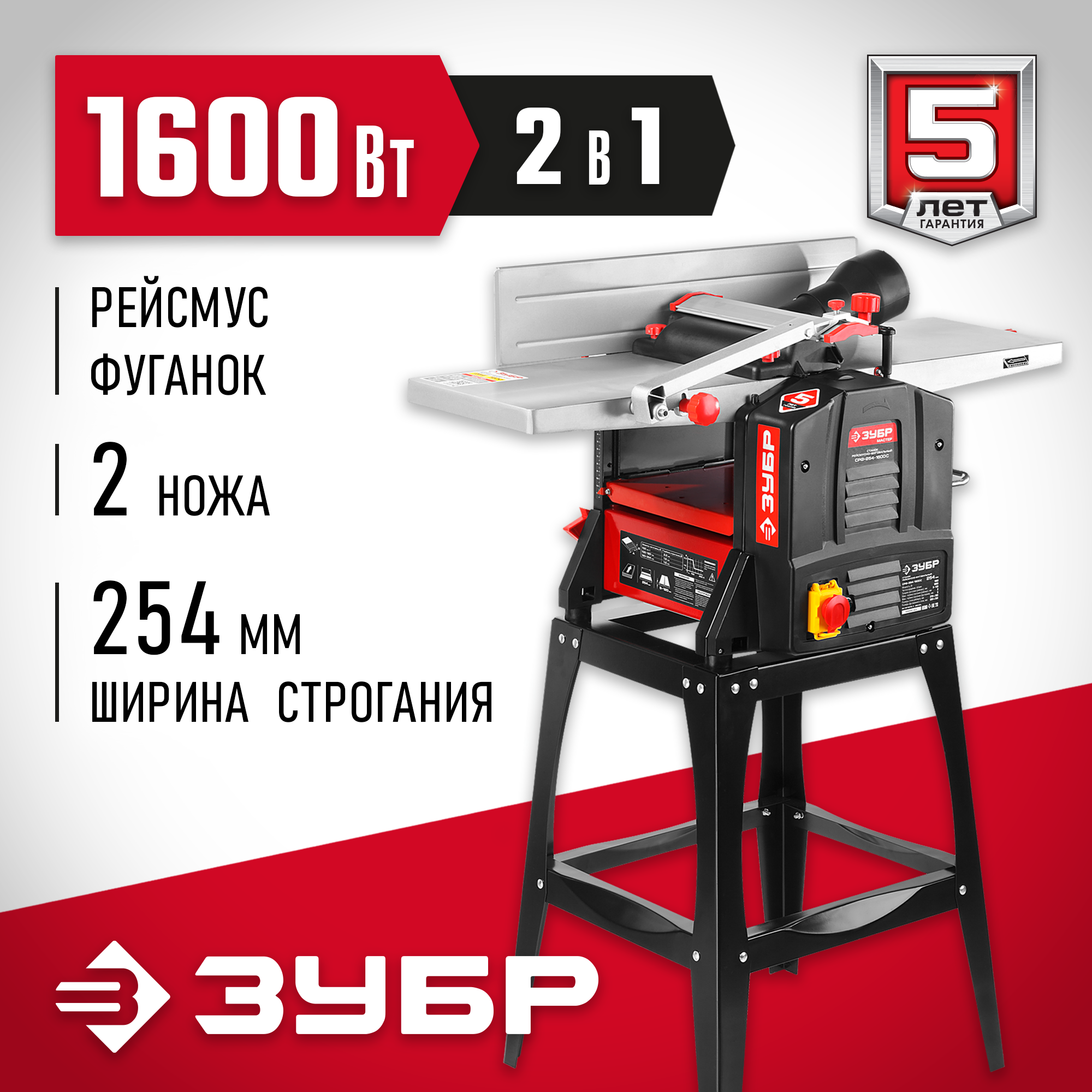 Комбинированный станок, сочетающий в себе функции рейсмуса и фуганка, способен обрабатывать заготовки из древесины толщиной до 120 мм и шириной до 254 мм. Простой в эксплуатации и не требующий специального обслуживания, станок ЗУБР значительно расширяет функционал любой мастерской по дереву.
