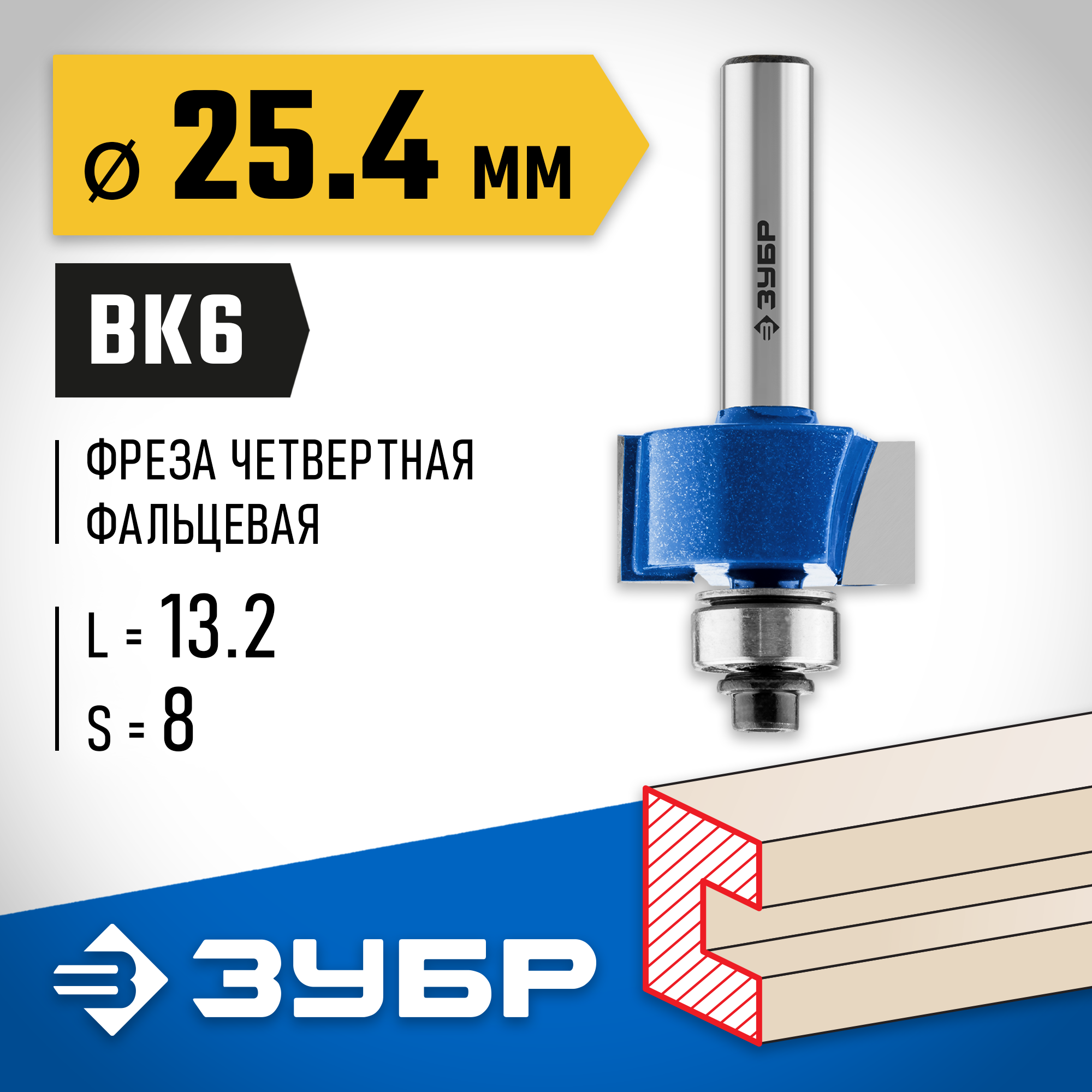 Фреза отлично подходит для выборки пазов четвертей на кромках и торцах деталей при работе с различными видами древесины.
