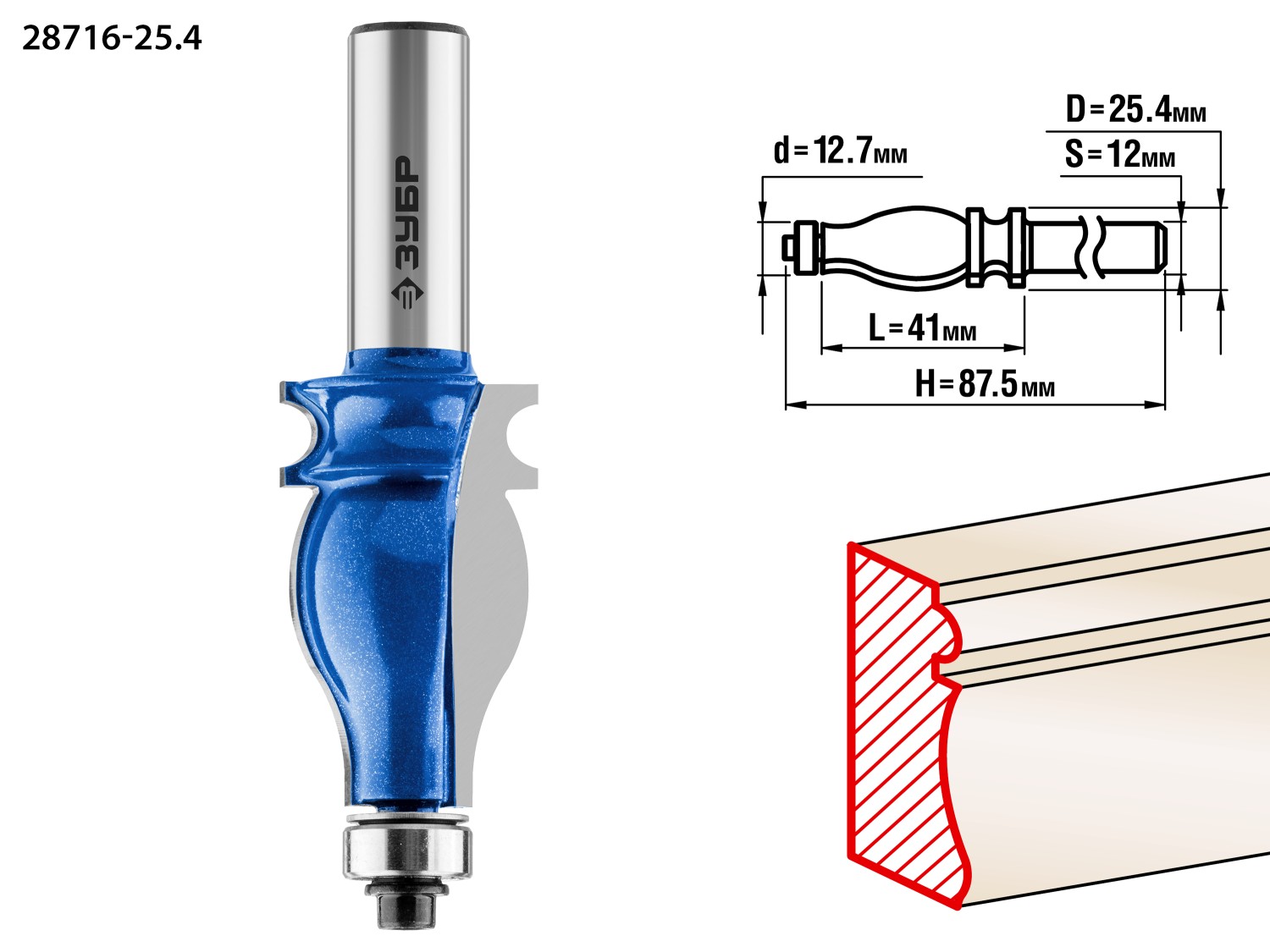 ЗУБР 25.4 x 41 мм, хвостовик 12 мм, фреза кромочная фигурная №5, Профессионал (28716-25.4)