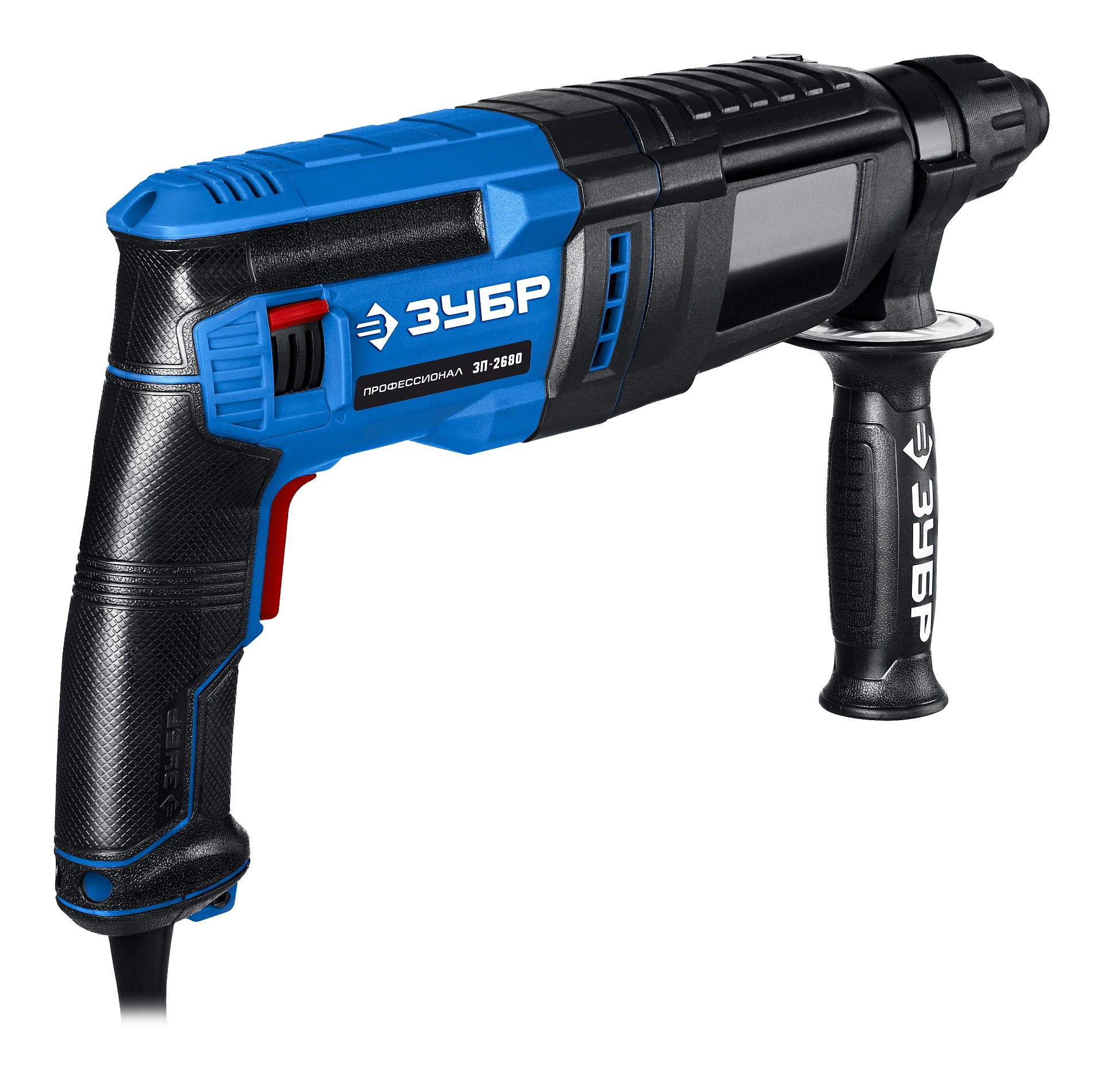 - Эргономичная дополнительная рукоятка с мягкими накладками позволяет надежно удерживать инструмент при работе