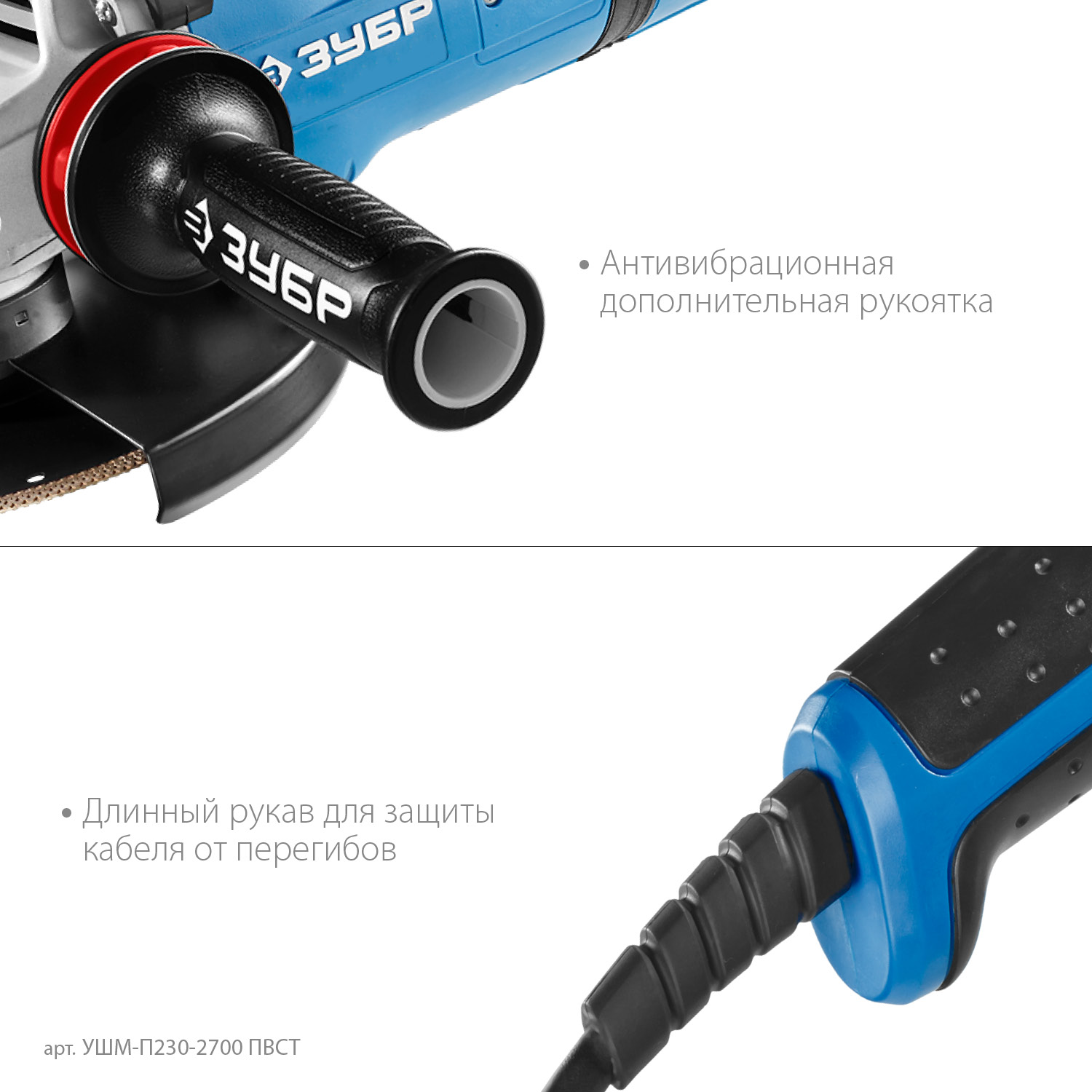 - Надежный хват благодаря основной и дополнительной рукояткам с мягкими накладками