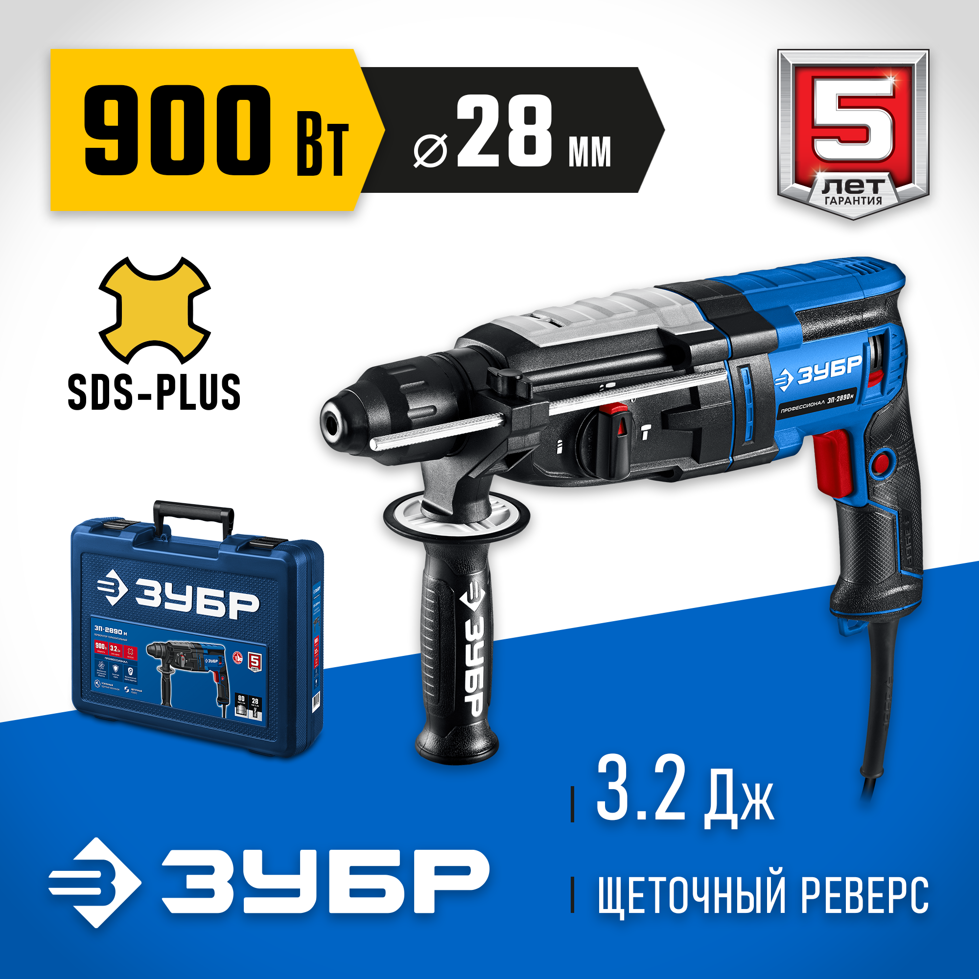 - Патрон SDS-Plus для быстрой замены расходного инструмента
