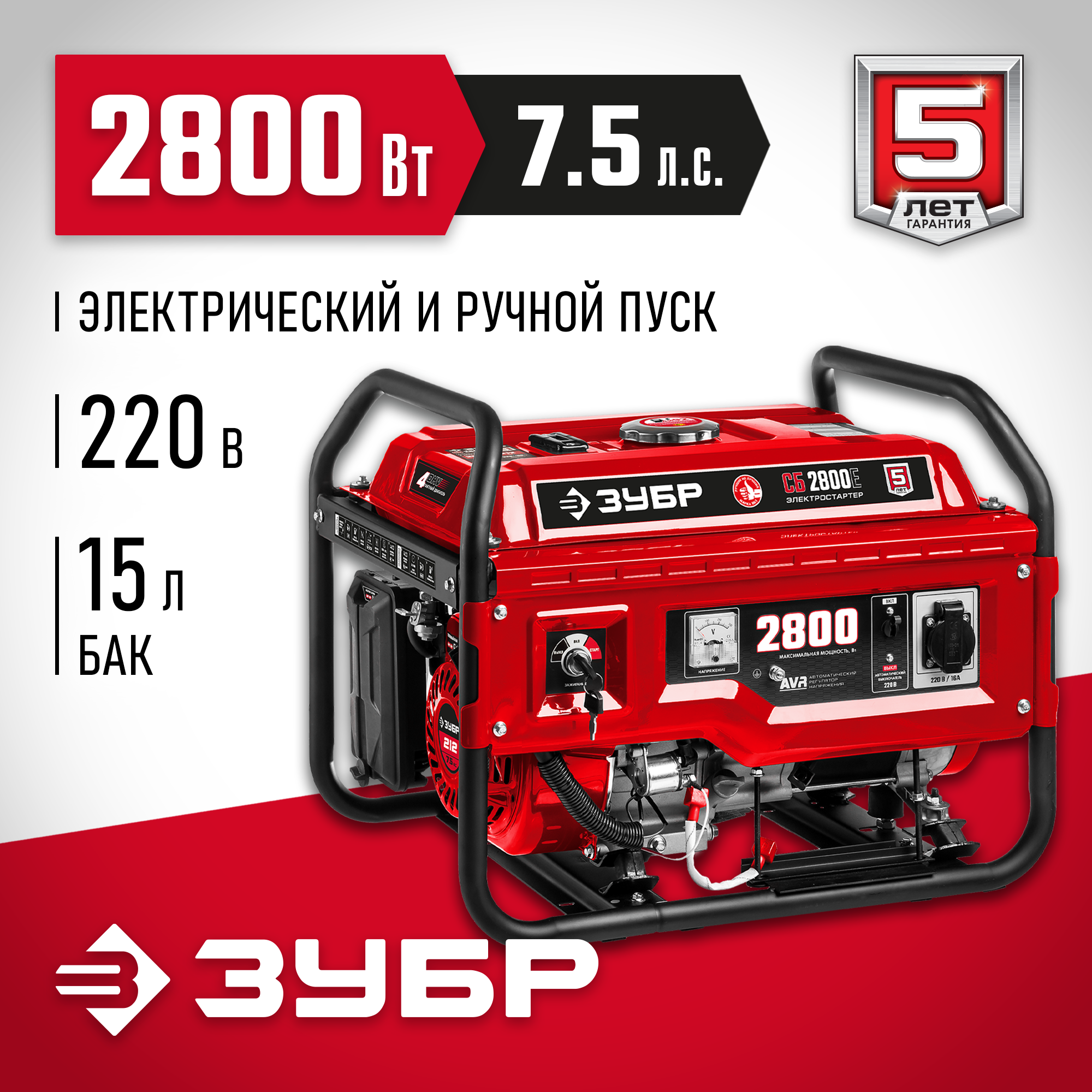 Оптимальный по мощности генератор - может обеспечить практически любой потребитель в загородном доме во время перебоев с электроснабжением или служить дополнительным источником энергии при ограниченной мощности сети. Электрический стартер облегчает запуск, особенно в зимнее время. Высокий ресурс, низкое потребление топлива и повышенная надежность - основные достоинства генераторов ЗУБР. Аккумуляторная батарея не входит в комплект поставки. Емкость батареи не менее 7 А*ч.