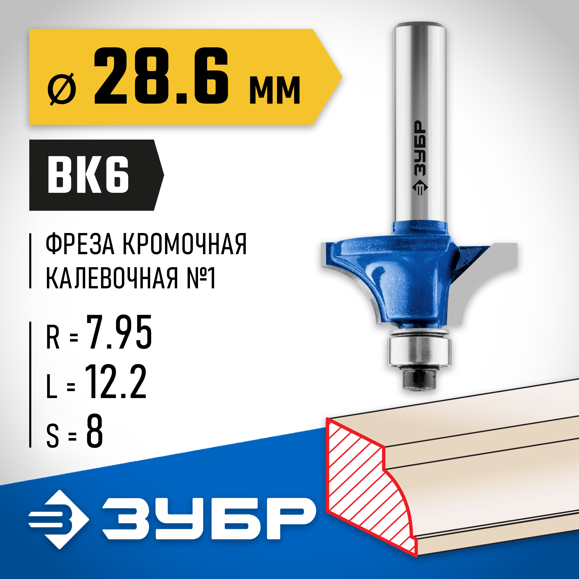 ЗУБР 28.6 x 12.2 мм, радиус 8 мм, фреза кромочная калевочная №1, Профессионал (28700-28.6)