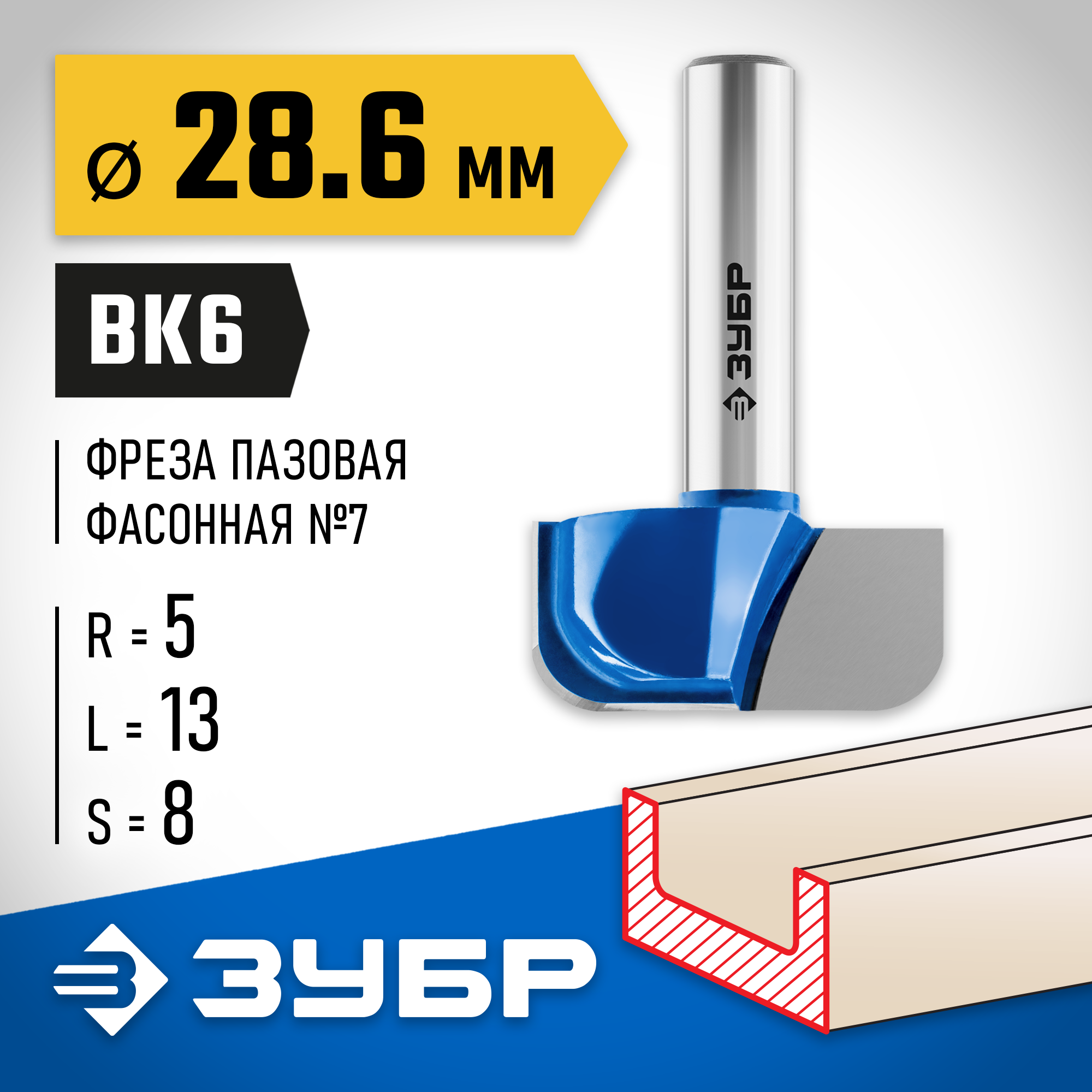ЗУБР 28.6 x 13 мм, радиус 5 мм, фреза пазовая фасонная №7, Профессионал (28746-28.6)