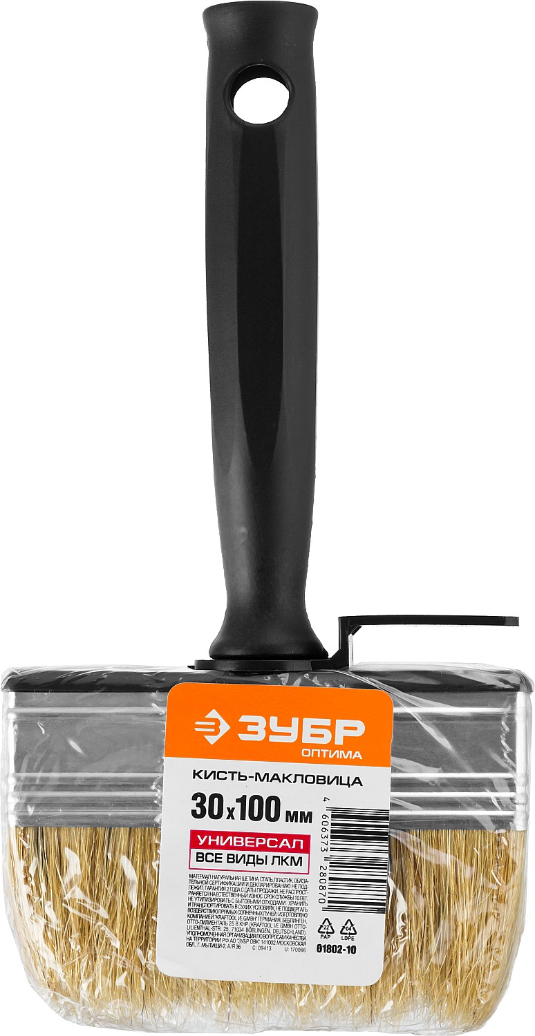 ЗУБР 3 х 10 см, светлая натуральная щетина, пластмассовый корпус, все виды ЛКМ, макловица (01802-10)