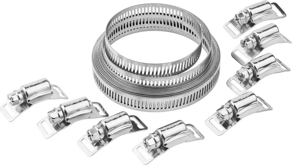 Комплектность набора позволяет создавать червячные хомуты любого диаметра. Используются для крепления шлангов к патрубкам в автомобилестроении, машиностроении, при выполнении авторемонтных, сантехнических и прочих работ.