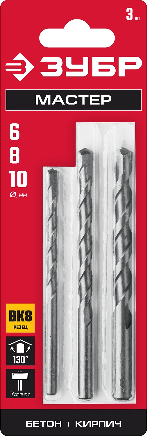 Сверла по бетону ЗУБР Мастер - надежный и проверенный инструмент в быту и строительстве. Применяются для работ по бетону, граниту, природному и искусственному камню, кирпичной кладке.