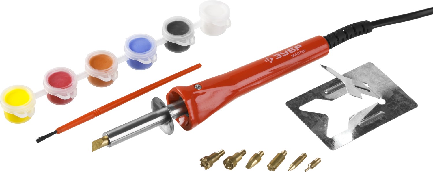 - 7 насадок для нанесения различных изображений на деревянную поверхность.
