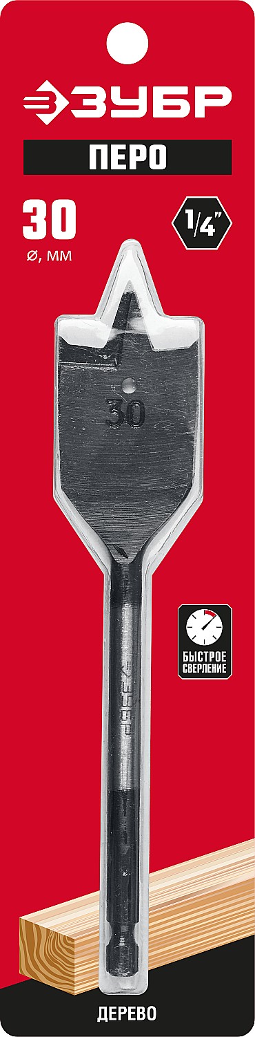ЗУБР 30 x 152 мм, с боковыми подрезателями, перовое, cверло по дереву (29505-30)