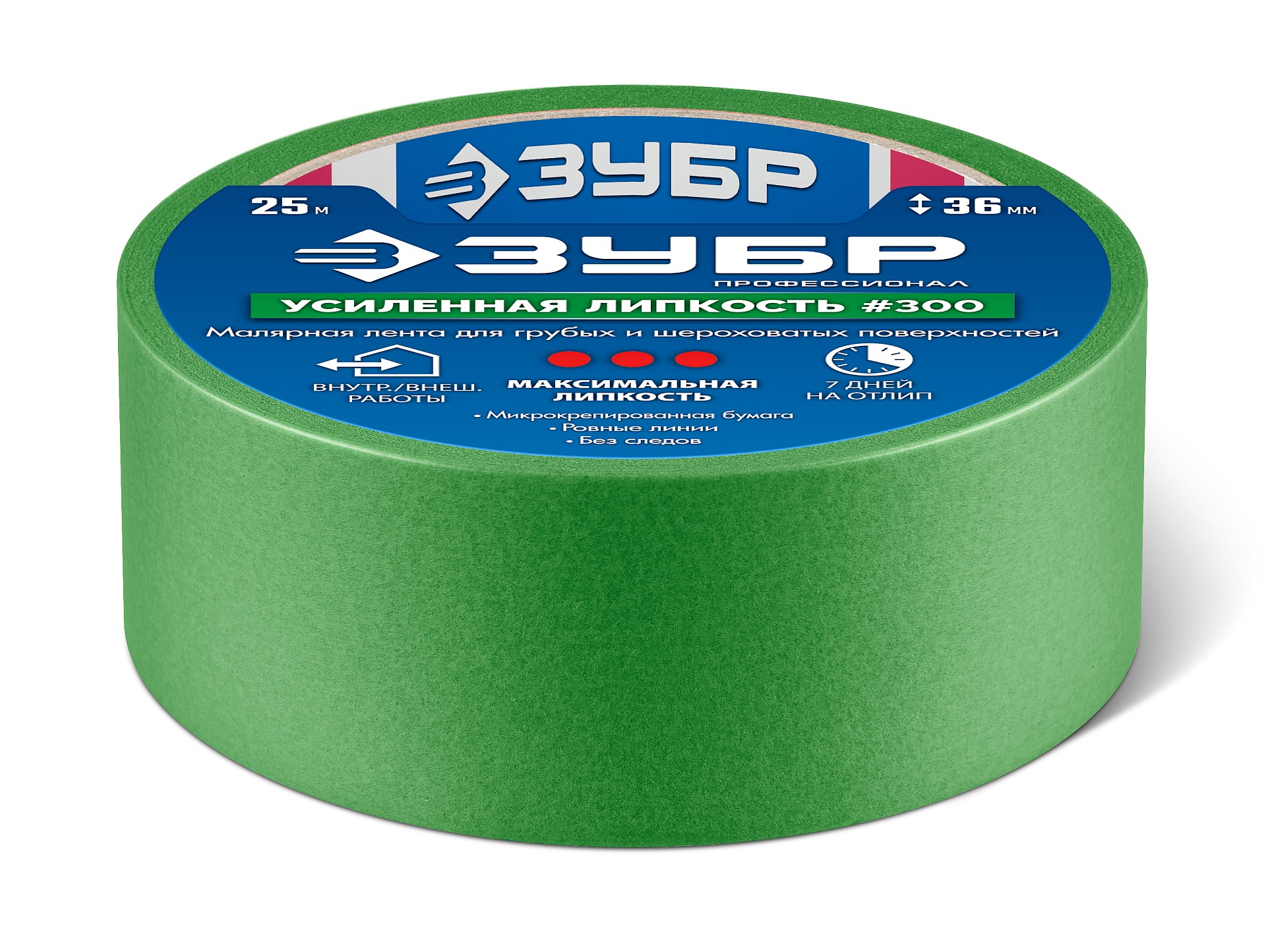 ЗУБР №300 36 мм х 25 м, для грубых и шероховатых поверхностей, малярная лента, Профессионал (12143-36)