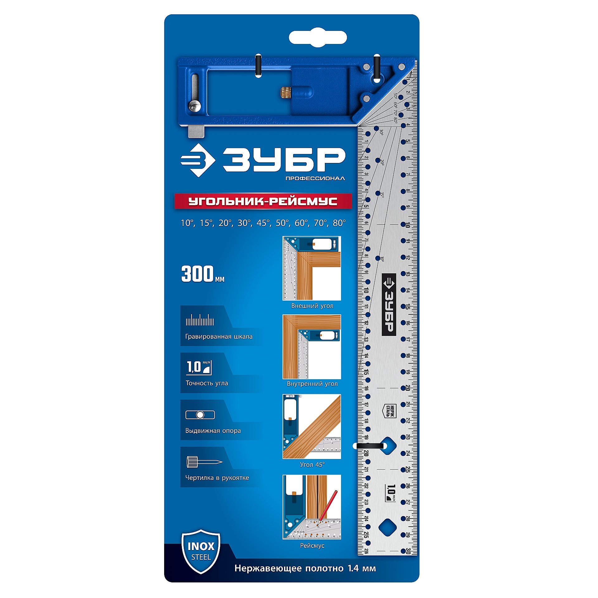 Для разметки параллельных линий, углов от 10° до 90° и контроля перпендикулярности конструкций при столярных и плотницких работах.