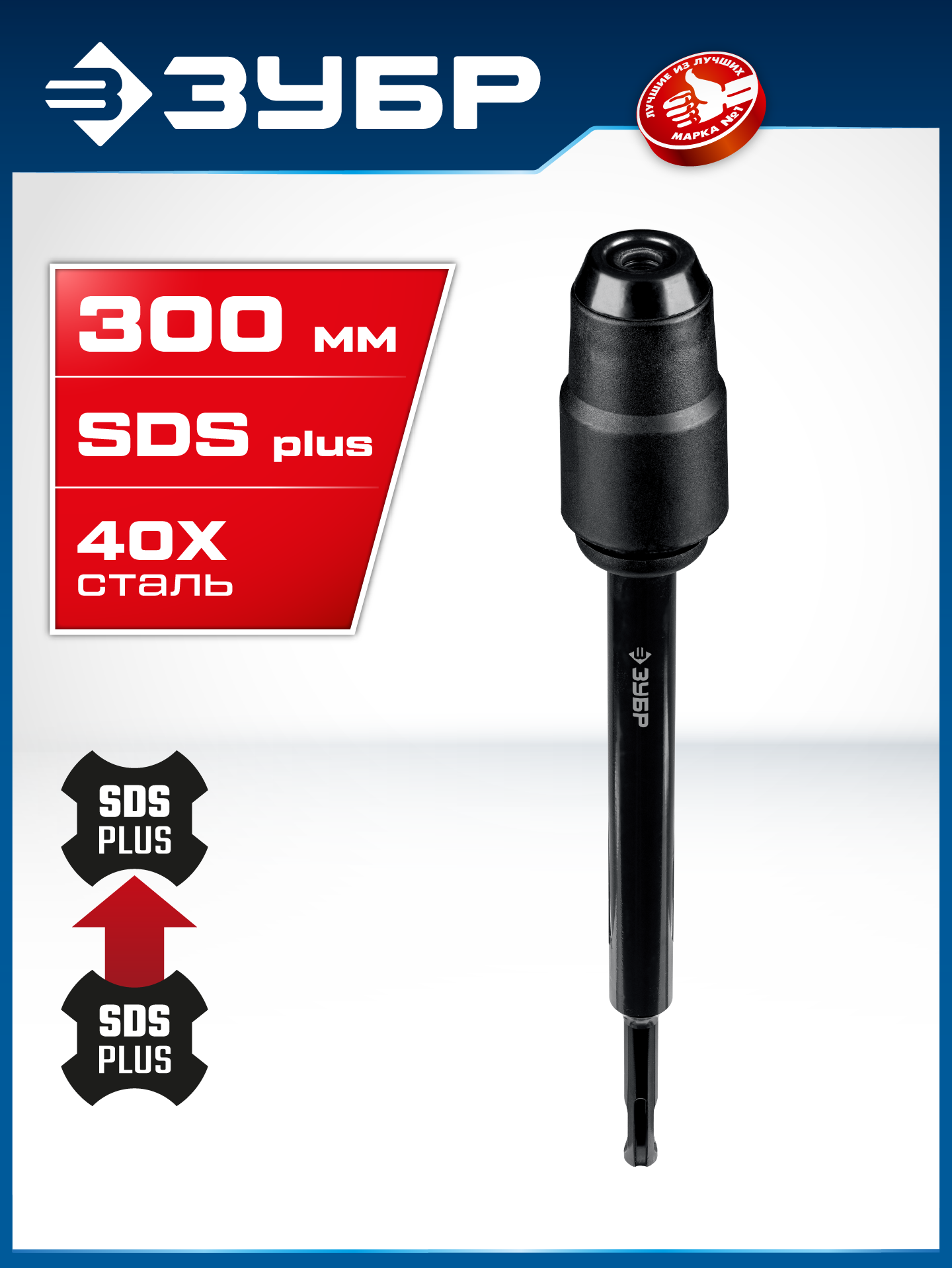 Удлинитель ЗУБР расширяет возможности вашей оснастки SDS-plus - работа в труднодоступных местах и на большую глубину.