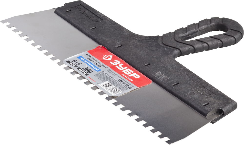 ЗУБР 300 мм, зуб 6 х 6 мм, пластиковая ручка, нержавеющий фасадный шпатель (10078-30-06)