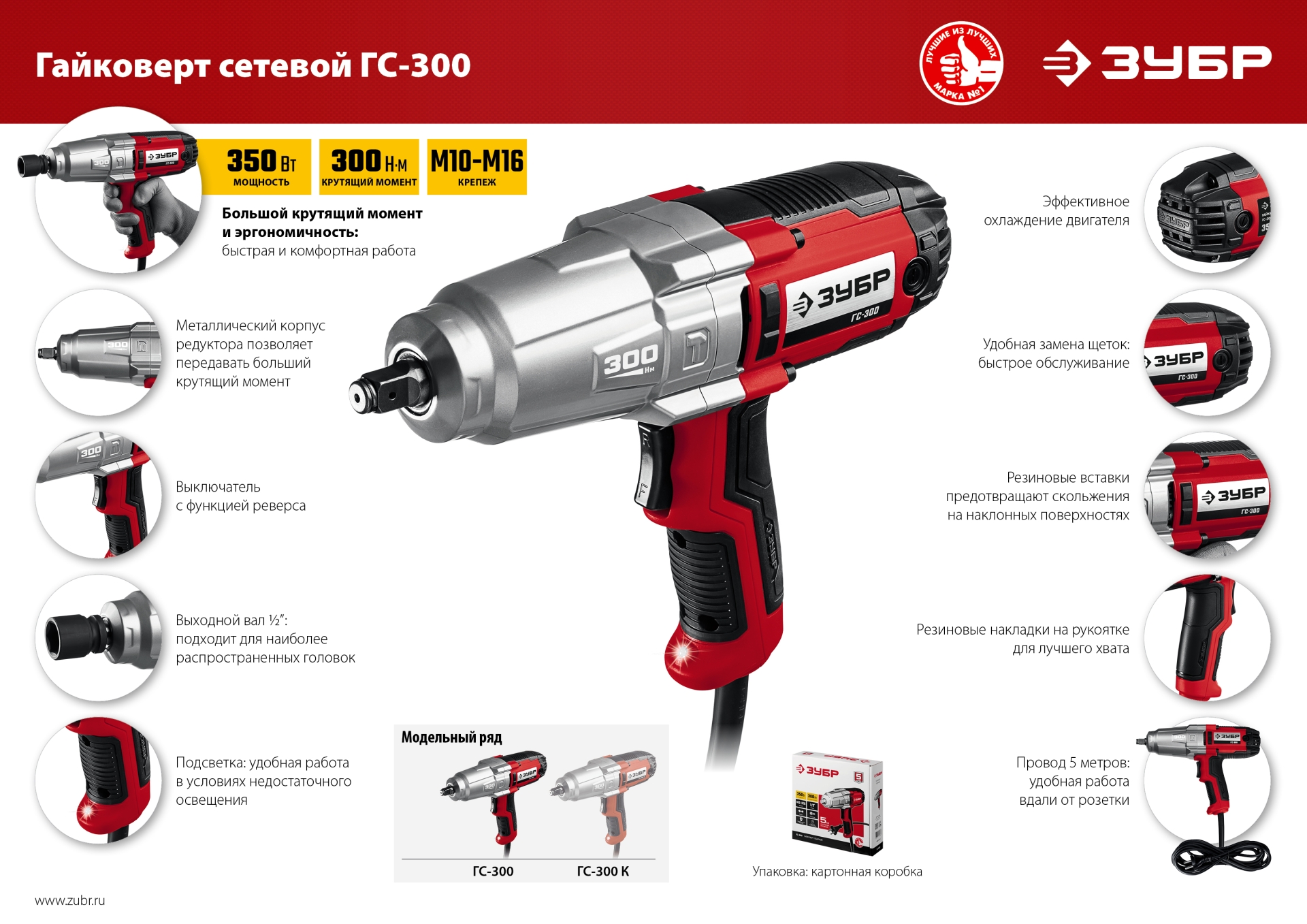 Гайковерт ″ЗУБР″ - мощное изделие для заворачивания/отворачивания крепежа. Огромный крутящий момент, не ограниченный зарядом батареи, и надежная конструкция позволяют использовать его для самых тяжелых работ в любой области