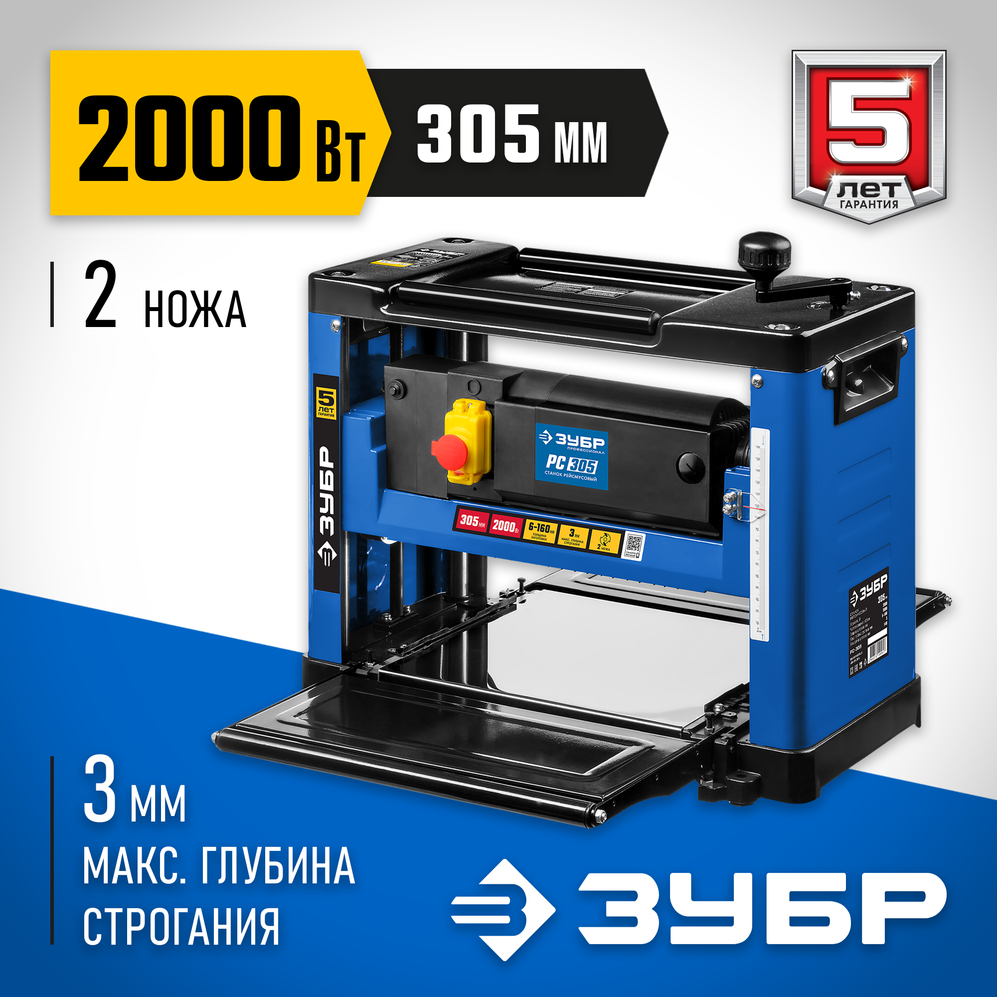 - Бесступенчатая регулировка глубины строгания