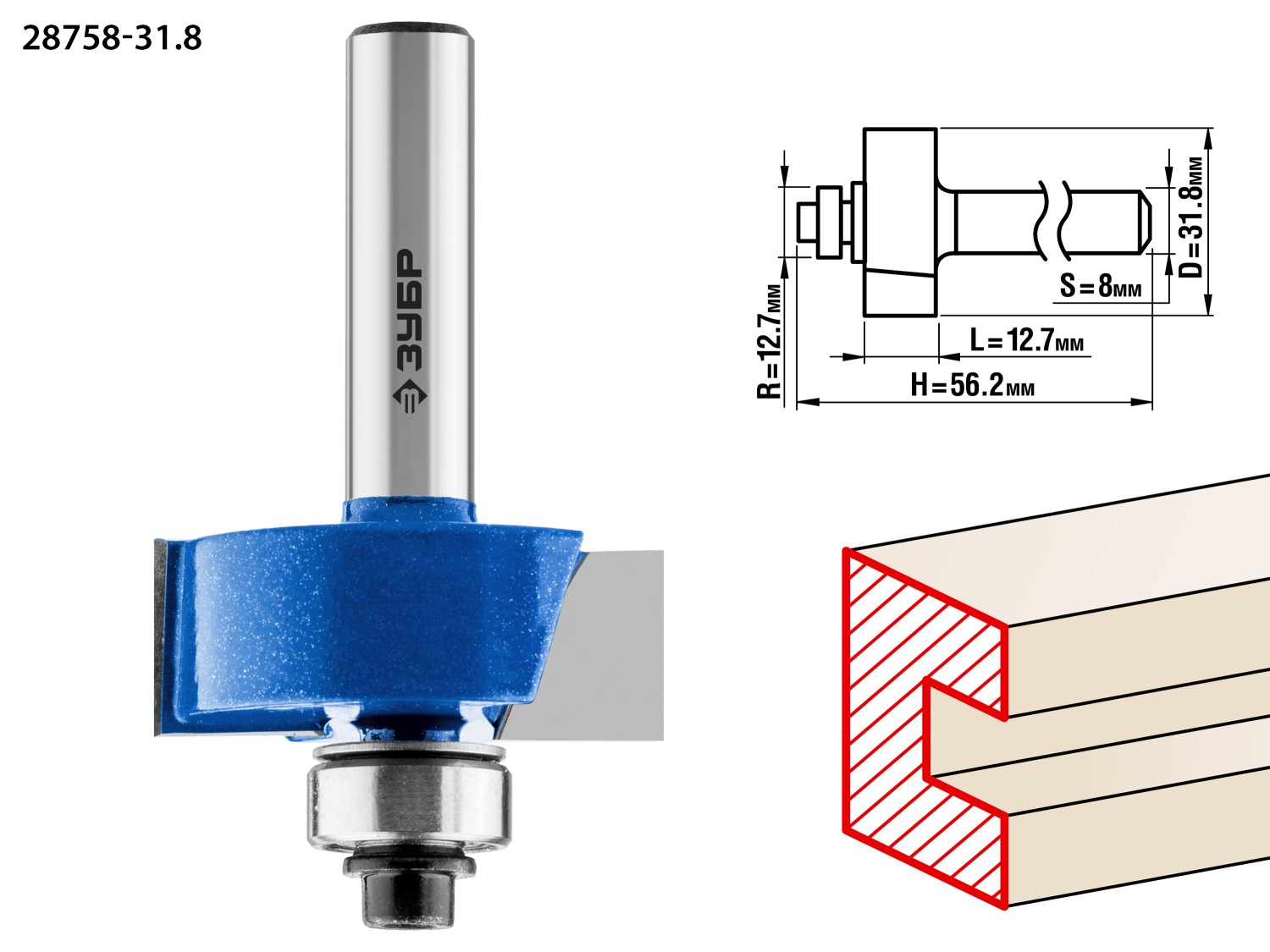 Фреза отлично подходит для выборки пазов четвертей на кромках и торцах деталей при работе с различными видами древесины.