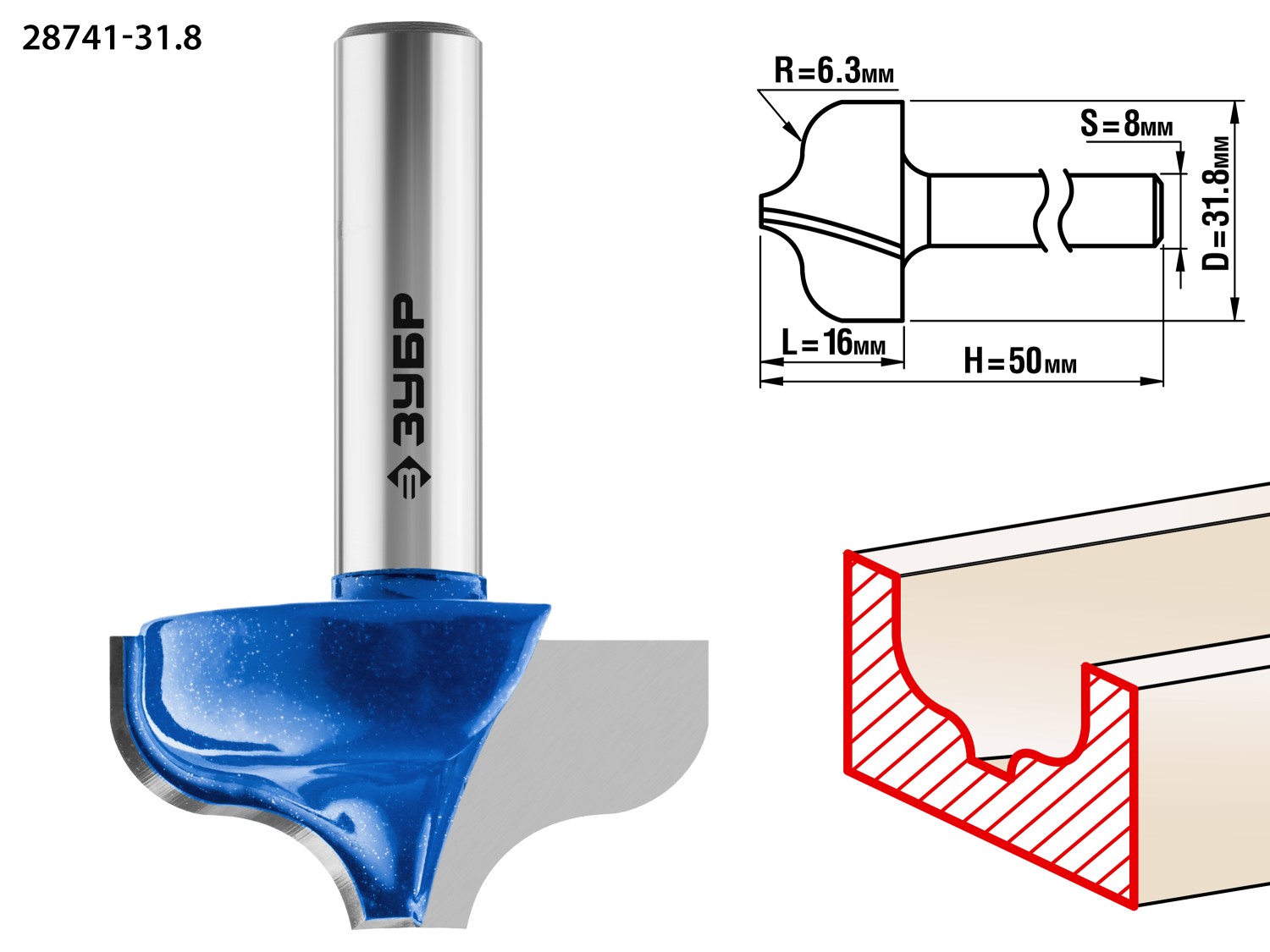 ЗУБР 31.8 x 16 мм, радиус 6.3 мм, фреза пазовая фасонная №2, Профессионал (28741-31.8)