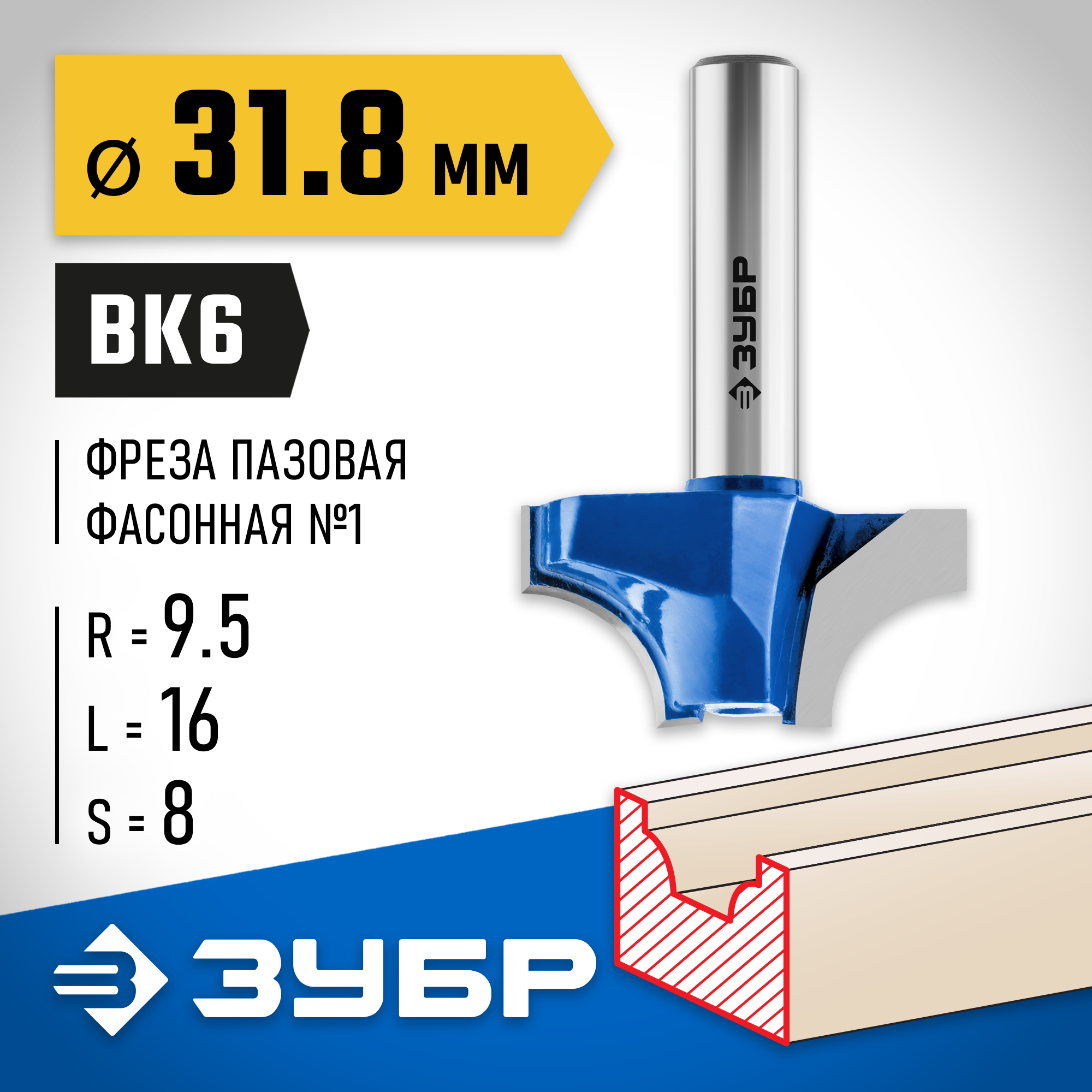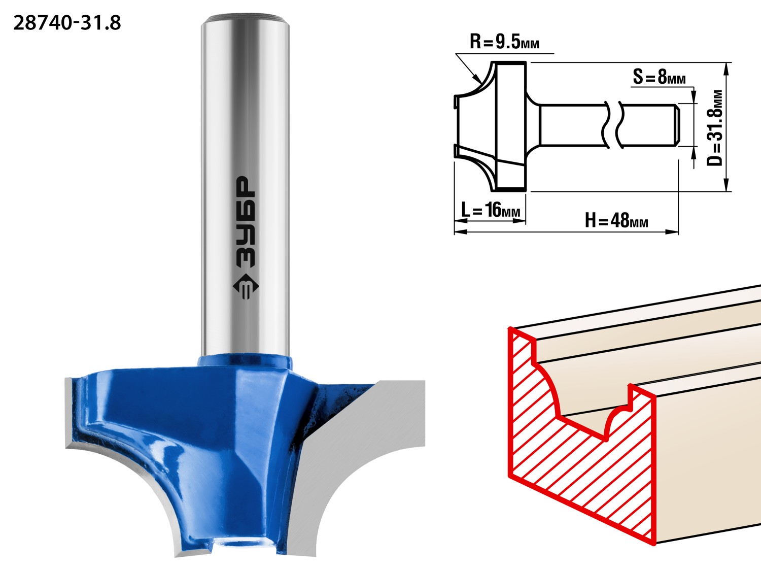 ЗУБР 31.8 x 16 мм, радиус 9.5 мм, фреза пазовая фасонная №1, Профессионал (28740-31.8)