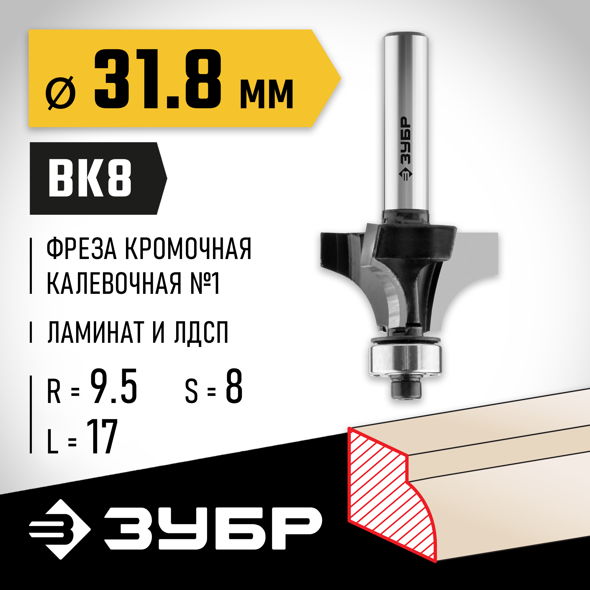 ЗУБР 31.8 x 17 мм, радиус 9.5 мм, фреза кромочная калевочная №1, Профессионал (28784-31.8)