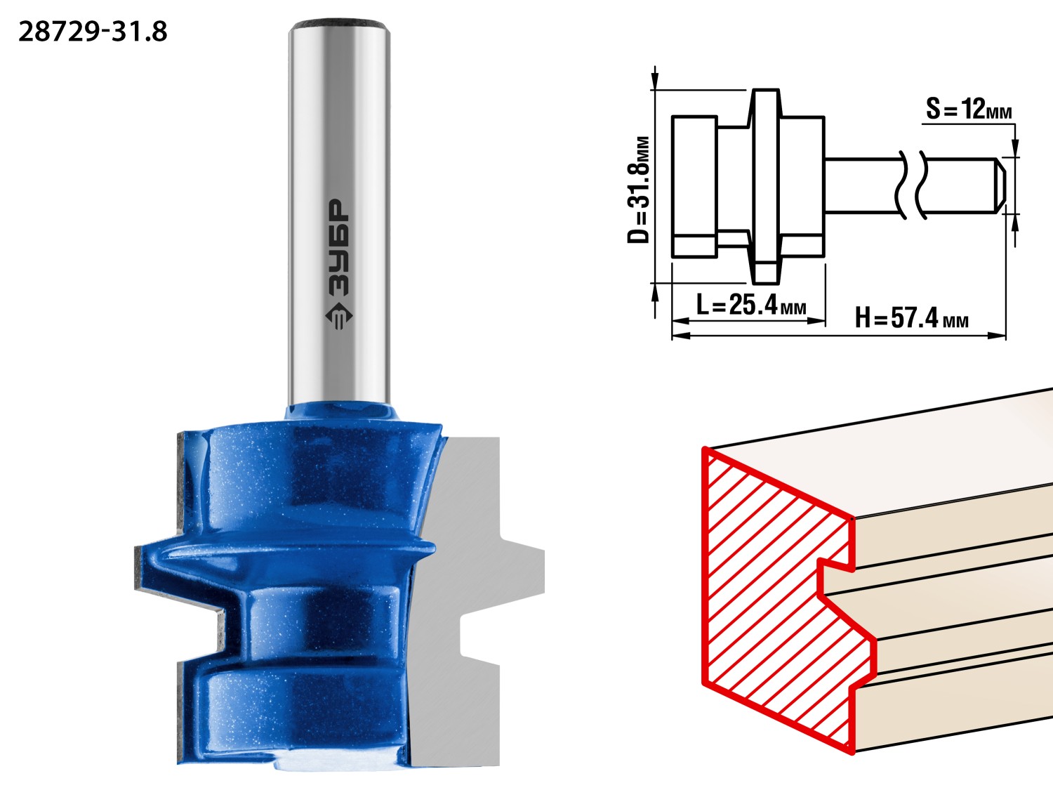 ЗУБР 31.8 x 25,4 мм, хвостовик 8 мм, фреза комбинированная универсальная, Профессионал (28729-31.8)