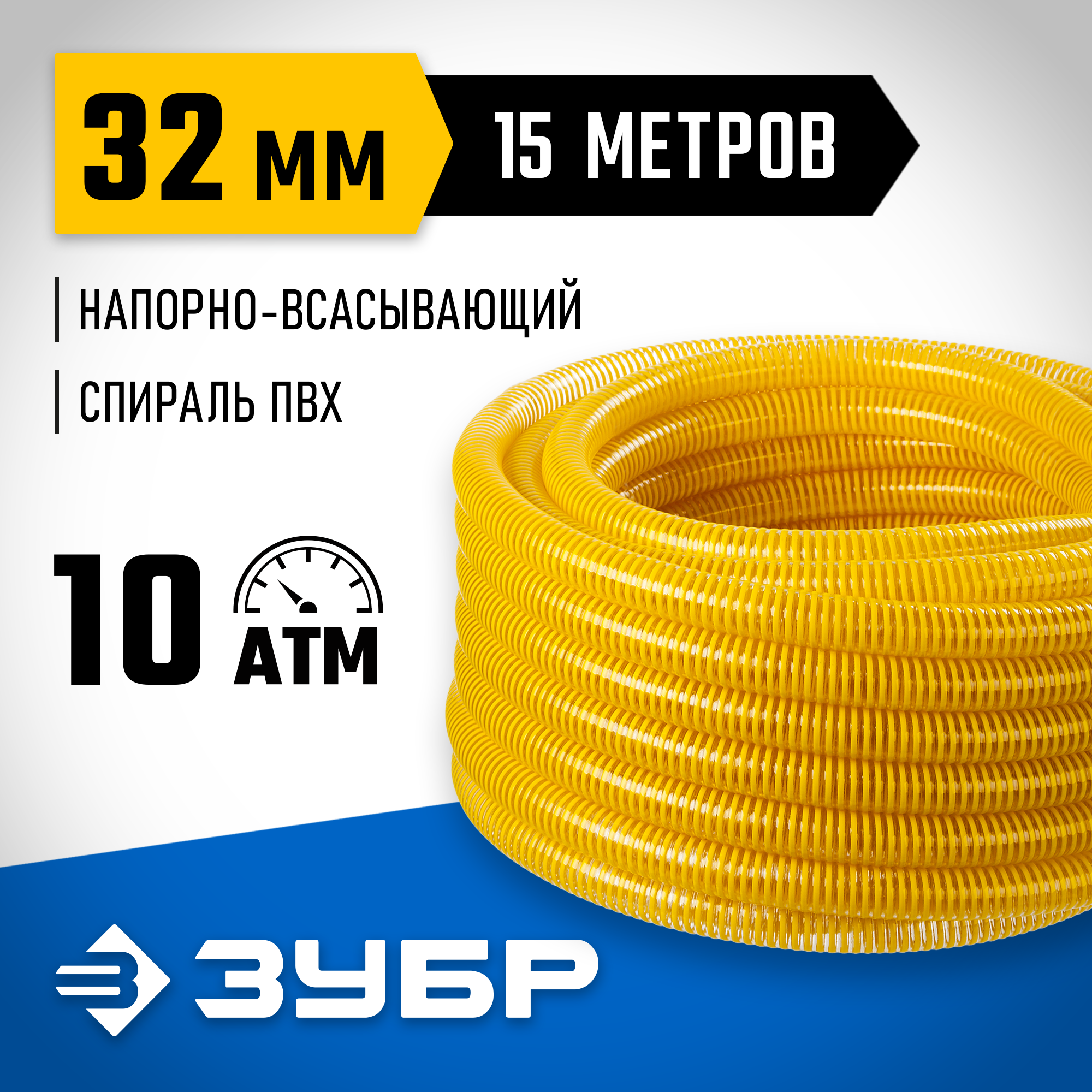 ЗУБР 32 мм x 15 м, 10 атм, со спиралью ПВХ, напорно-всасывающий шланг, ПРОФЕССИОНАЛ (40327-32-15)