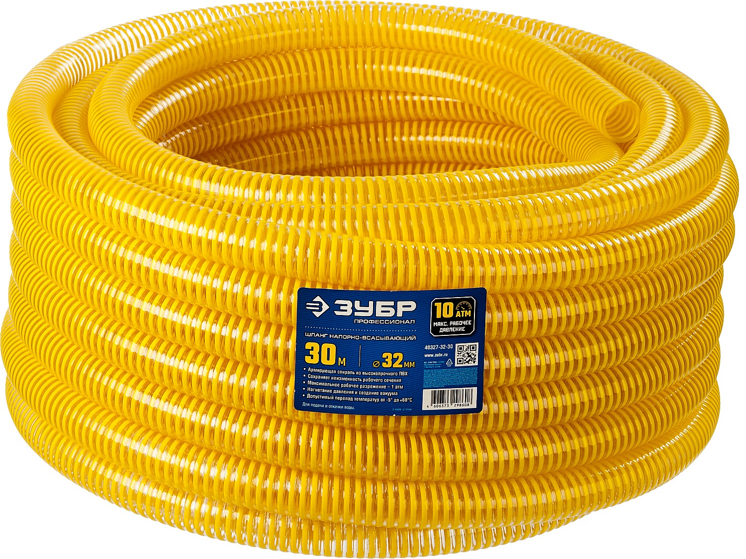 ЗУБР 32 мм x 30 м, 10 атм, со спиралью ПВХ, напорно-всасывающий шланг, ПРОФЕССИОНАЛ (40327-32-30)