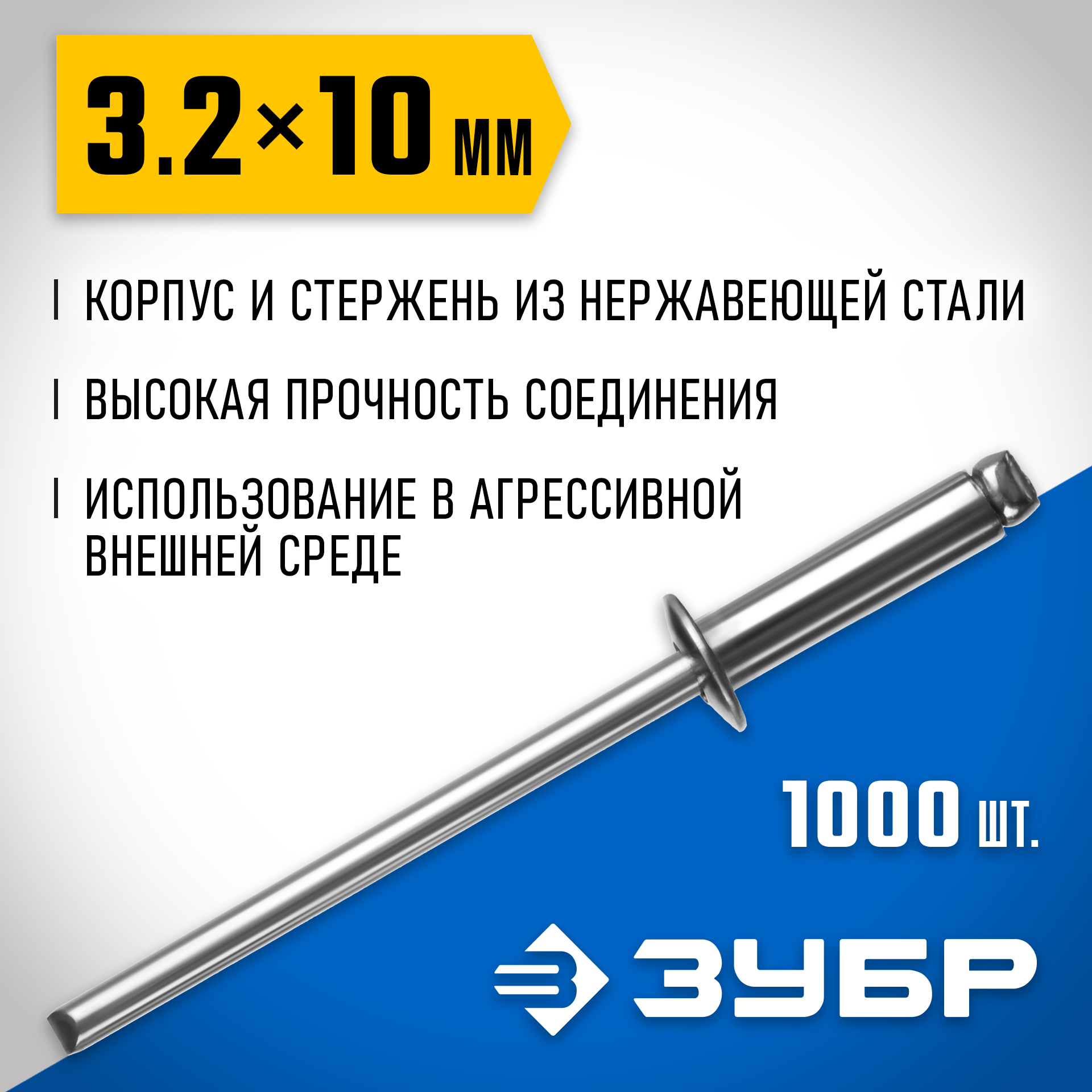 - Корпус и стержень заклепки изготовлены из нержавеющей стали А2 для использования в условиях агрессивной внешней среды: повышенная влажность, осадки, высокие температуры и т.п.
