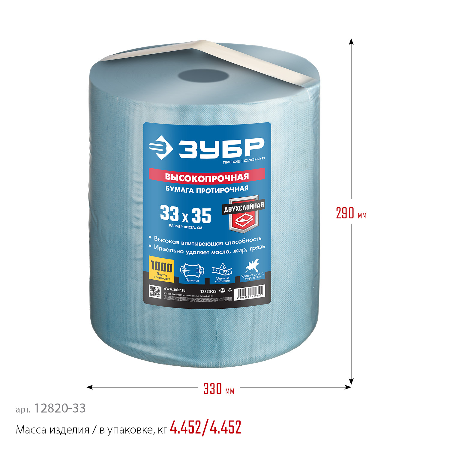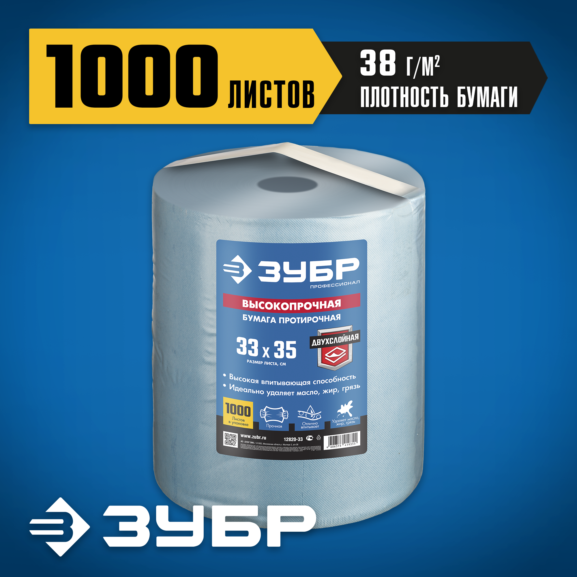 ЗУБР 33 х 35 см, 2-х слойная, в рулоне, 1000 листов, протирочная бумага, Профессионал (12820-33)