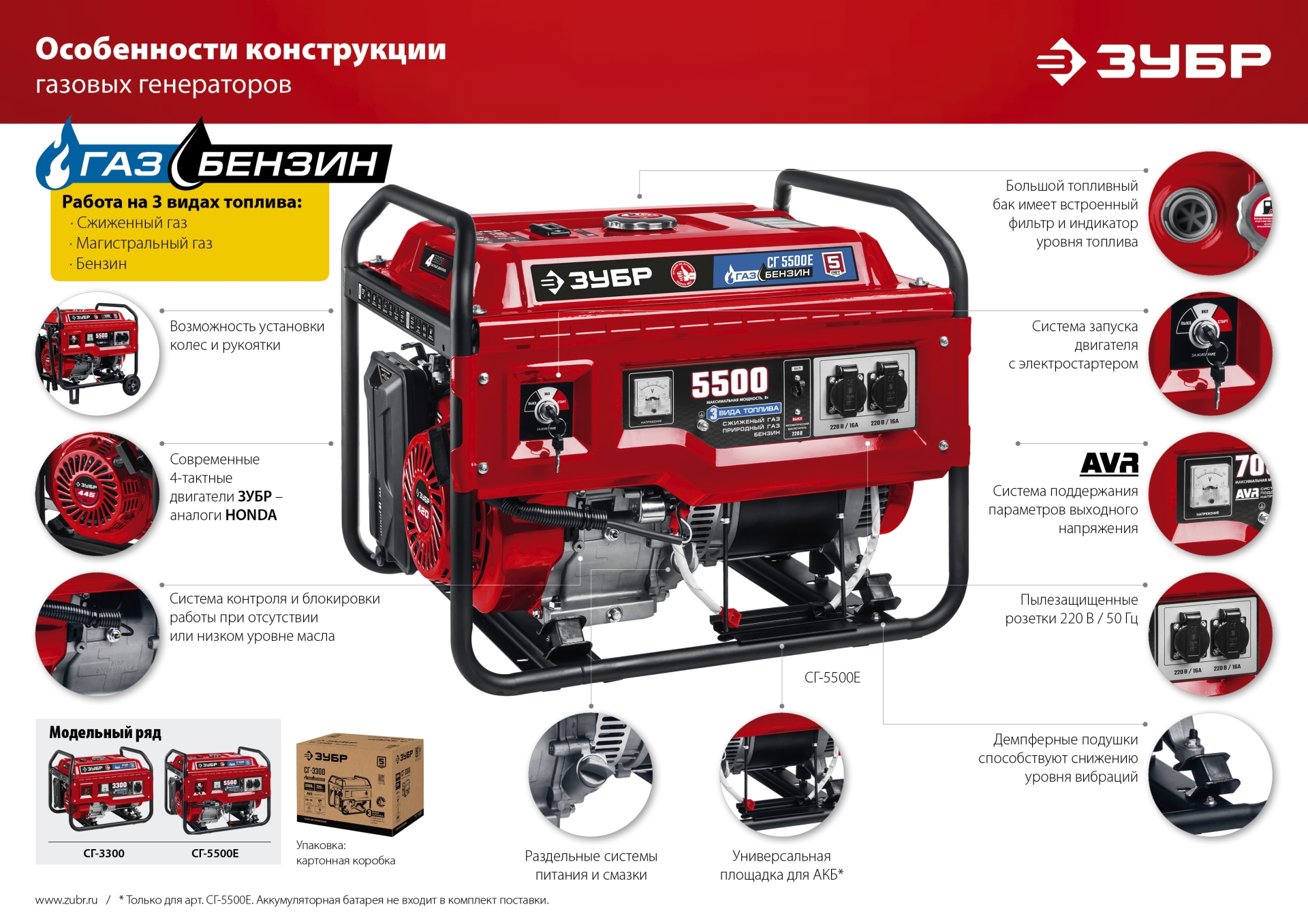 Мобильный двухтопливный электрогенератор мощностью 3.3 кВт, работающих как на бензине (АИ-92), так и на газе – при этом, для использования газа не требуется установка дополнительного оборудования. Такой генератор станет оптимальным решением обеспечения электроэнергией потребителей в отсутствии электрической сети, также изделие можно использовать в качестве резервного или аварийного источника электрической энергии.