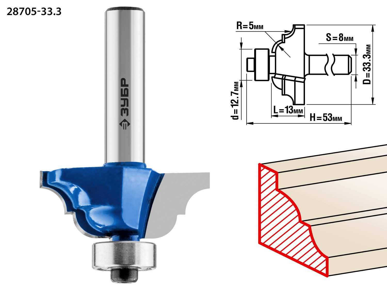 ЗУБР 33.3 x 13 мм, радиус 5 мм, фреза кромочная калевочная №4, Профессионал (28705-33.3)