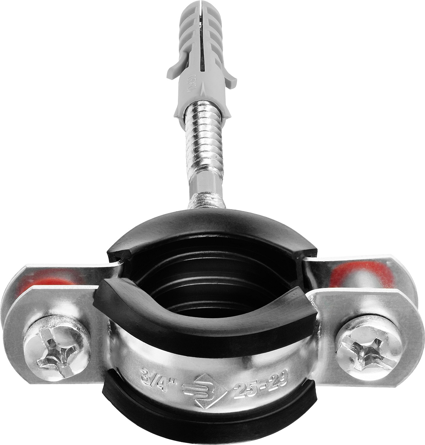 Стальные трубные хомуты способны выдерживать большие нагрузки и обеспечивают надежность крепления труб различного назначения к любым основаниям. Труба прочно фиксируется внутри хомута с помощью метрических винтов. Уплотнитель из высококачественной резины обеспечивает идеальную шумоизоляцию. Ширина ленты хомута составляет 20 мм.