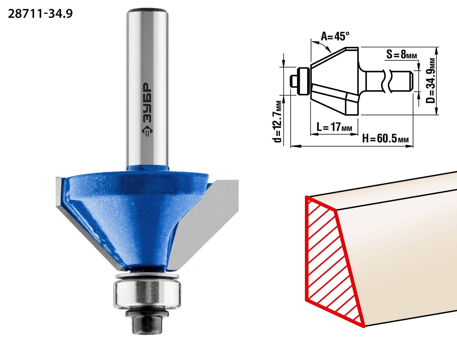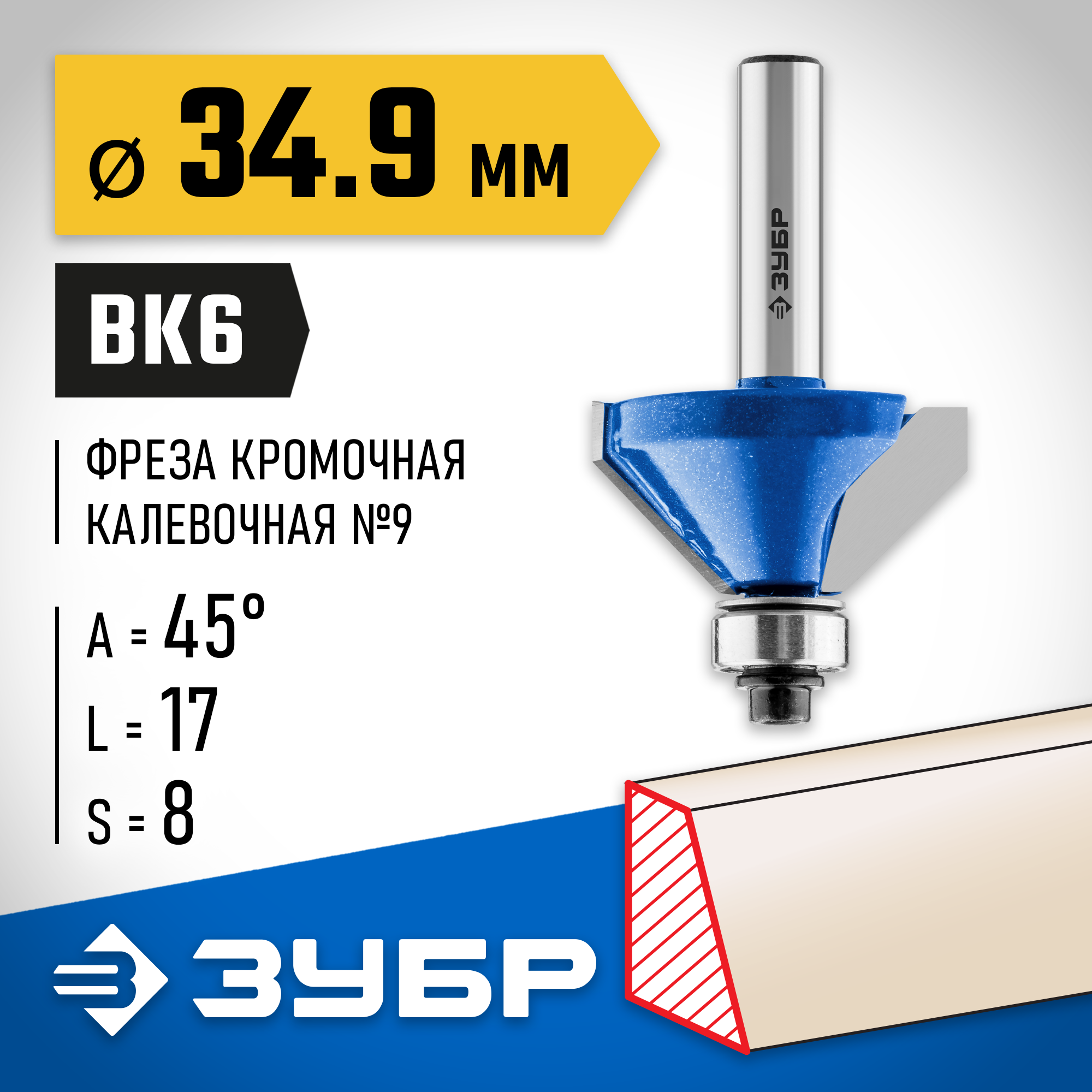 ЗУБР 34.9 x 16 мм, фреза кромочная калевочная (фасочная) №9, Профессионал (28711-34.9)
