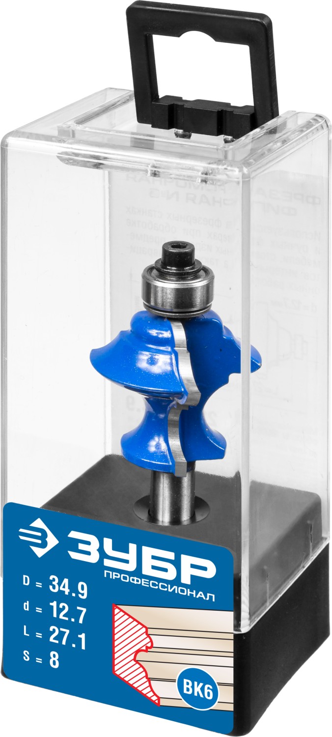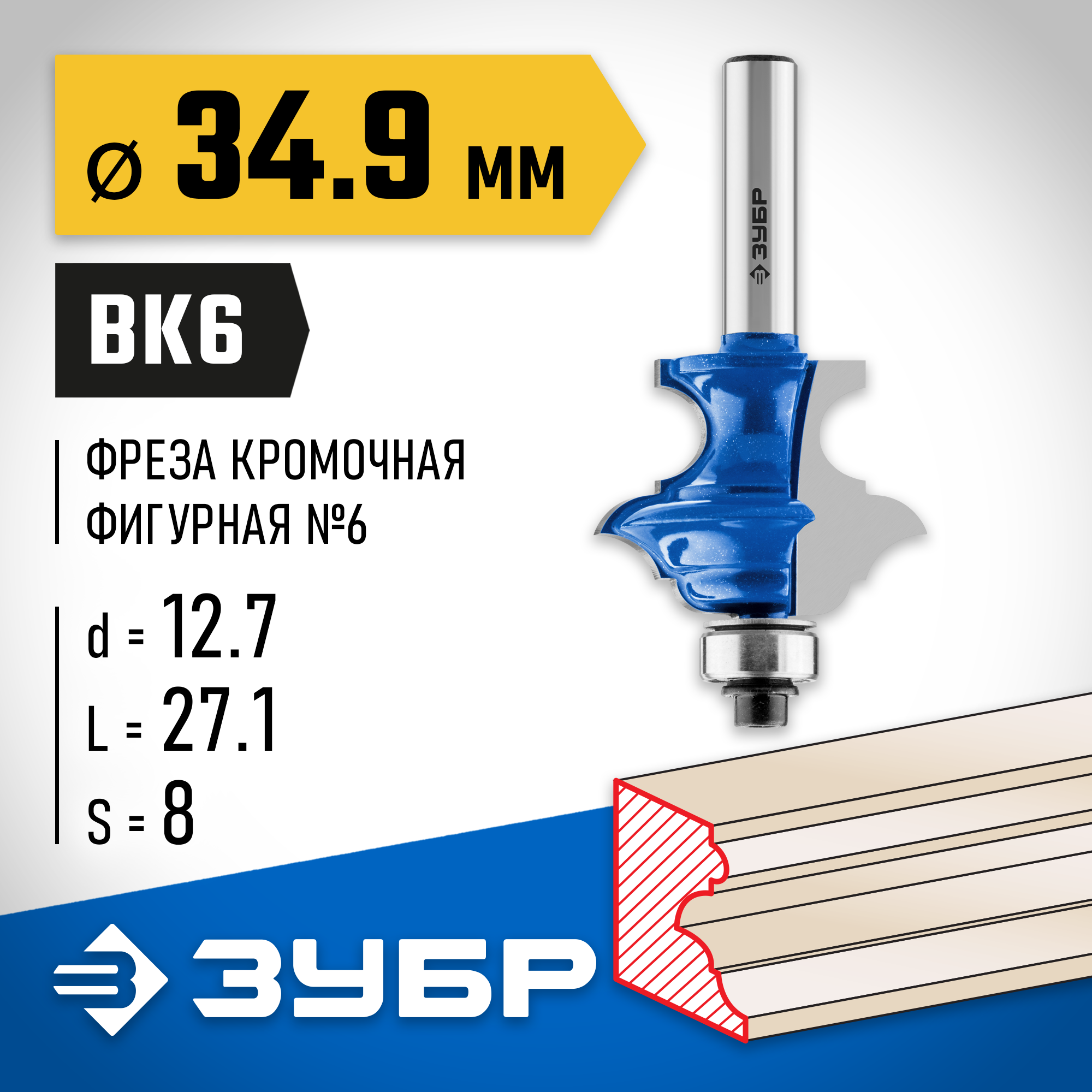 ЗУБР 34.9 x 25.4 мм, хвостовик 8 мм, фреза кромочная фигурная №6, Профессионал (28717-34.9)