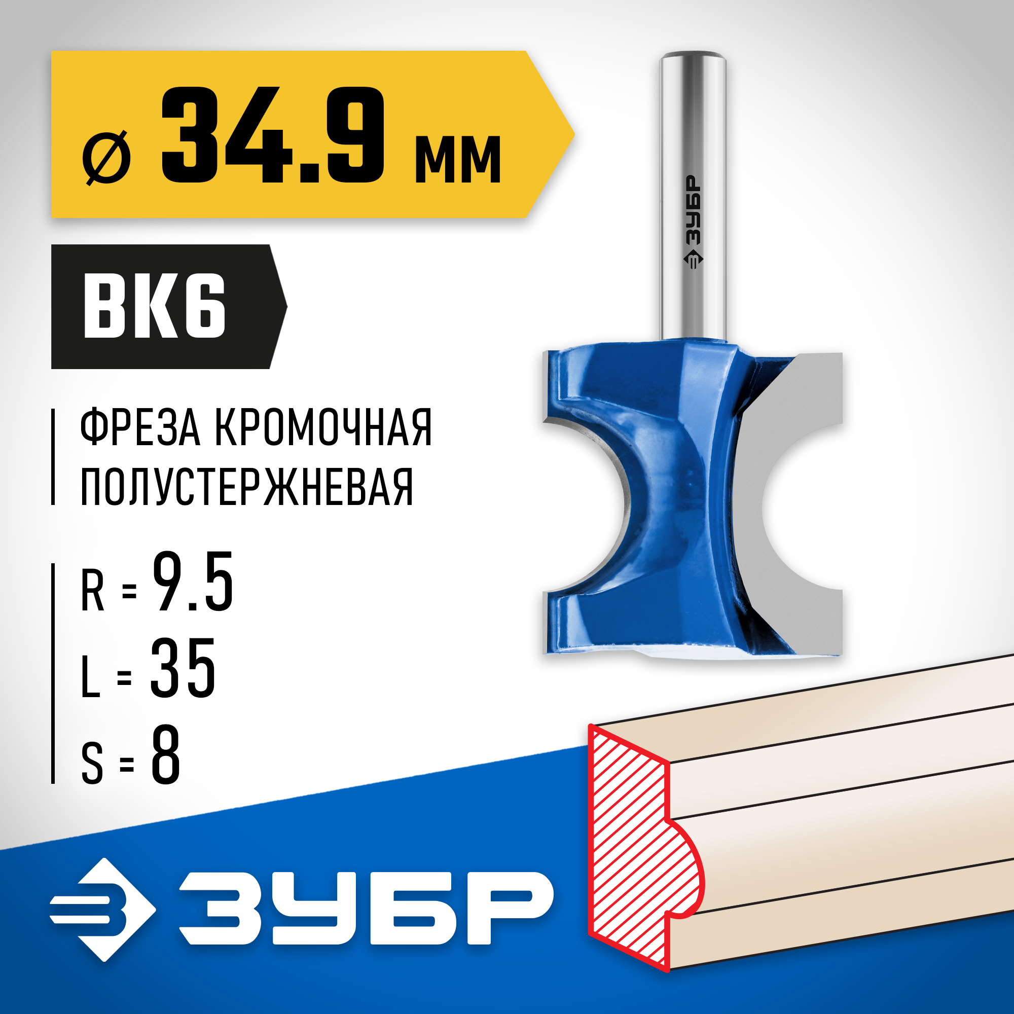 Фреза отлично подходит для обработки кромок, торцев, получения декоративного профиля при работе с различными видами древесины.