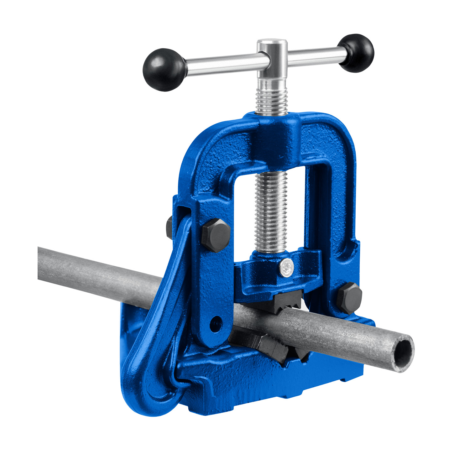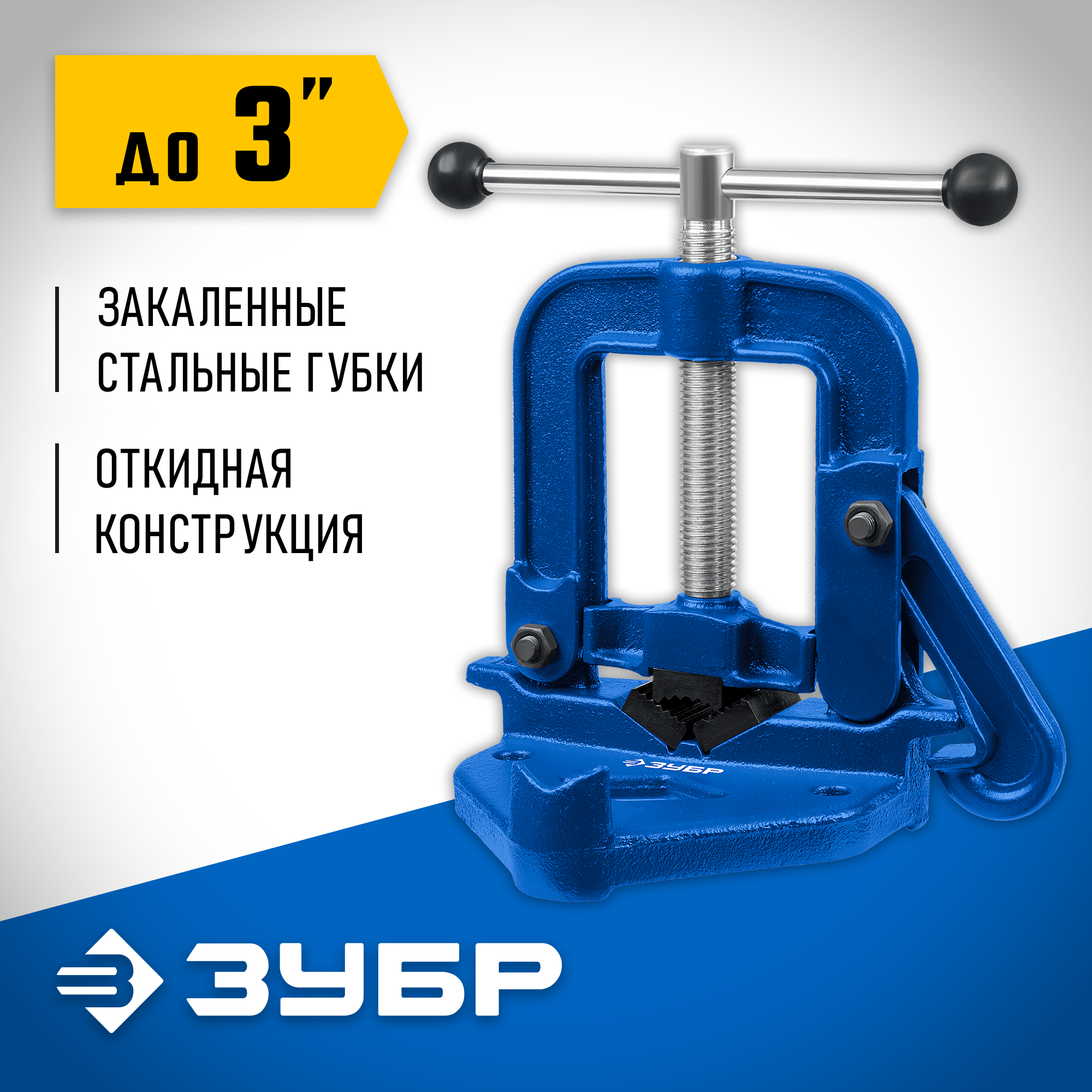 - Рельефная поверхность губок для надежного и безопасного крепления труб
