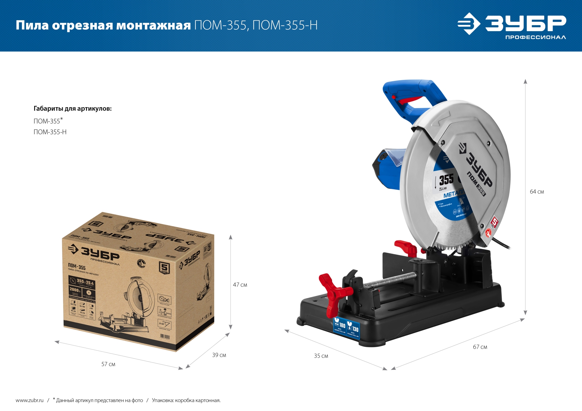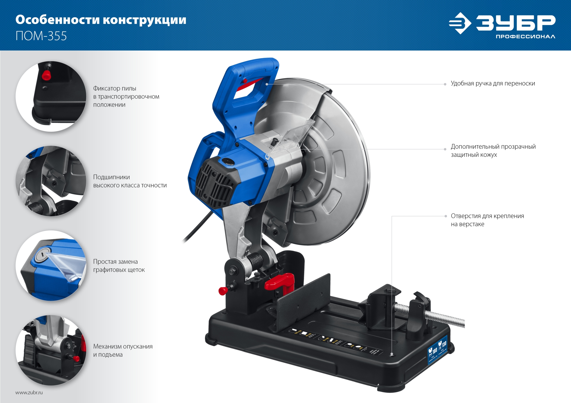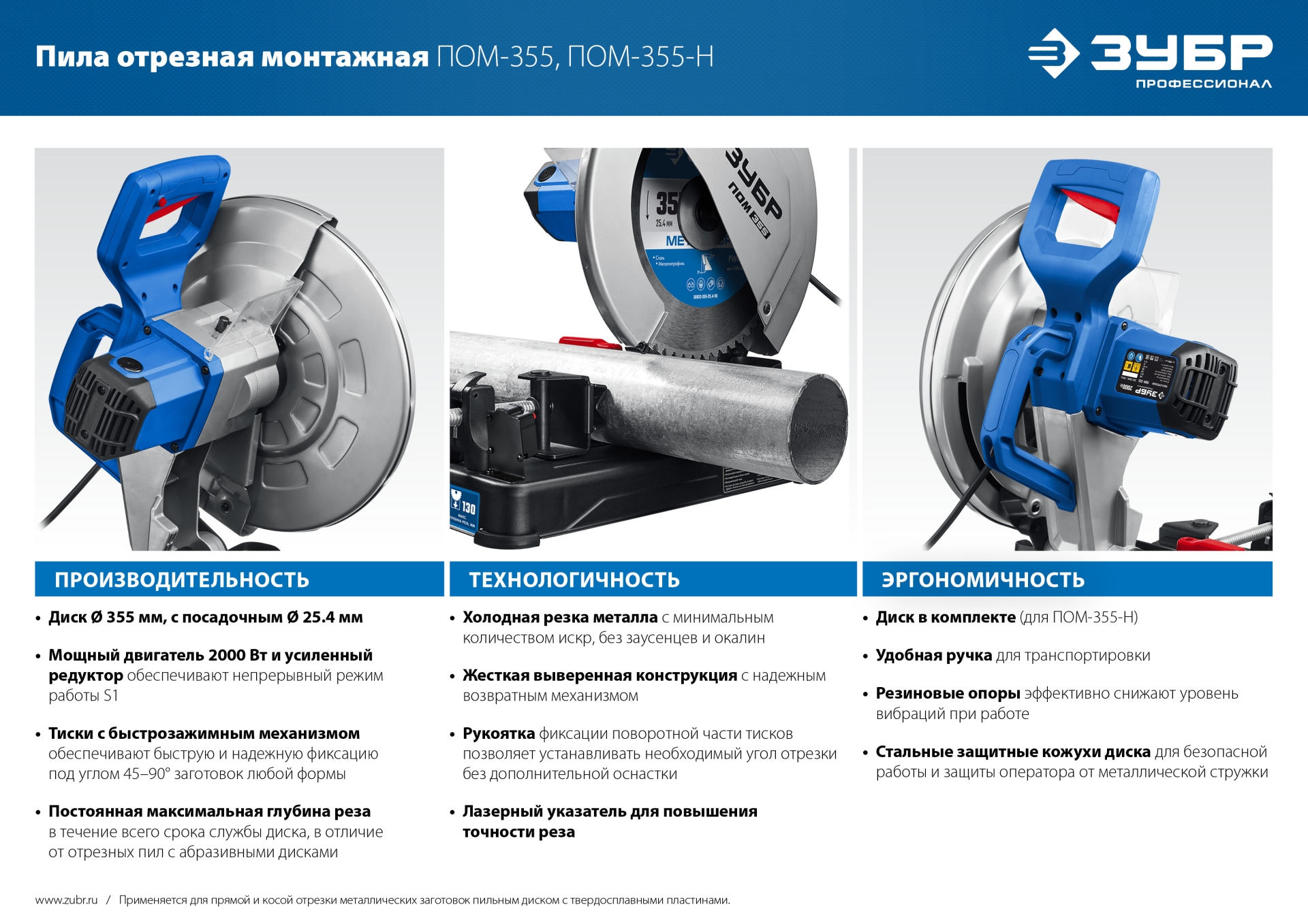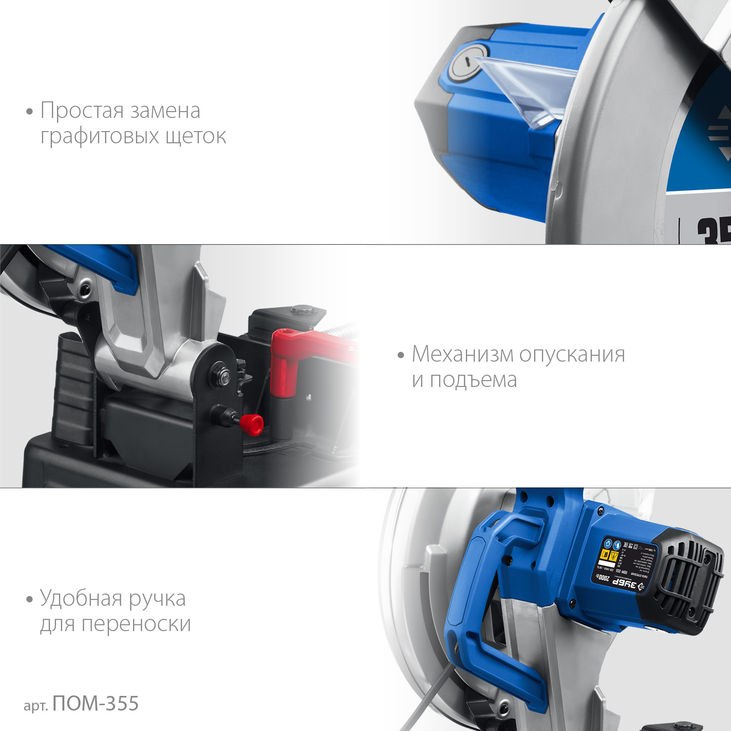ПОМ-355 Профессиональная отрезная пила для пильных дисков по металлу. Диск с твердосплавными пластинами (в комплект не входит), позволяет получить стабильный производительный рез высокго качества, с минимальным количеством искр, без заусенцев и окалин.