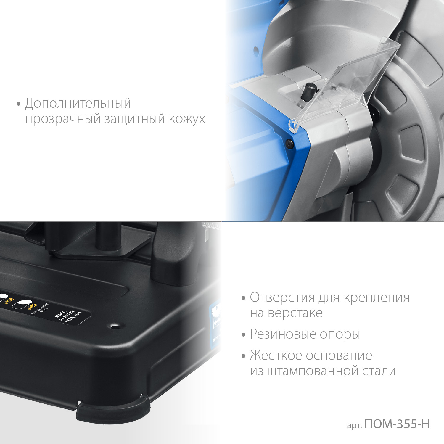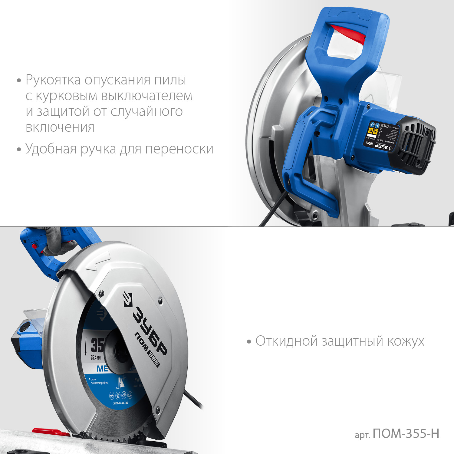 ПОМ-355-Н Профессиональная отрезная пила для пильных дисков по металлу. Диск с твердосплавными пластинами (в комплекте) позволяет получить стабильный производительный рез высокого качества, с минимальным количеством искр, без заусенцев и окалин.