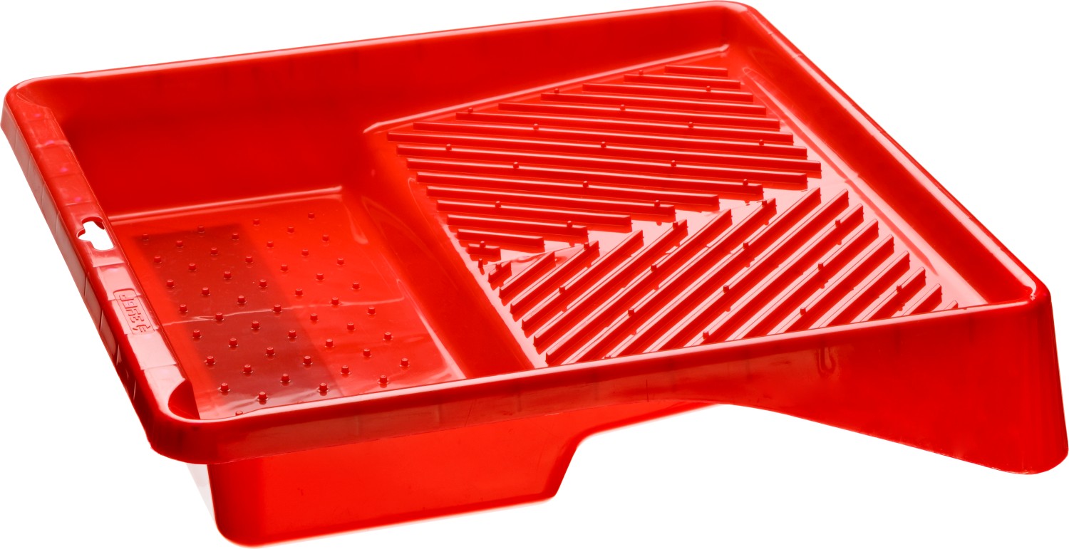 Уникальная форма малярной ванночки предназначена для максимального набора и равномерного распределения лакокрасочного материала по поверхности валика.
