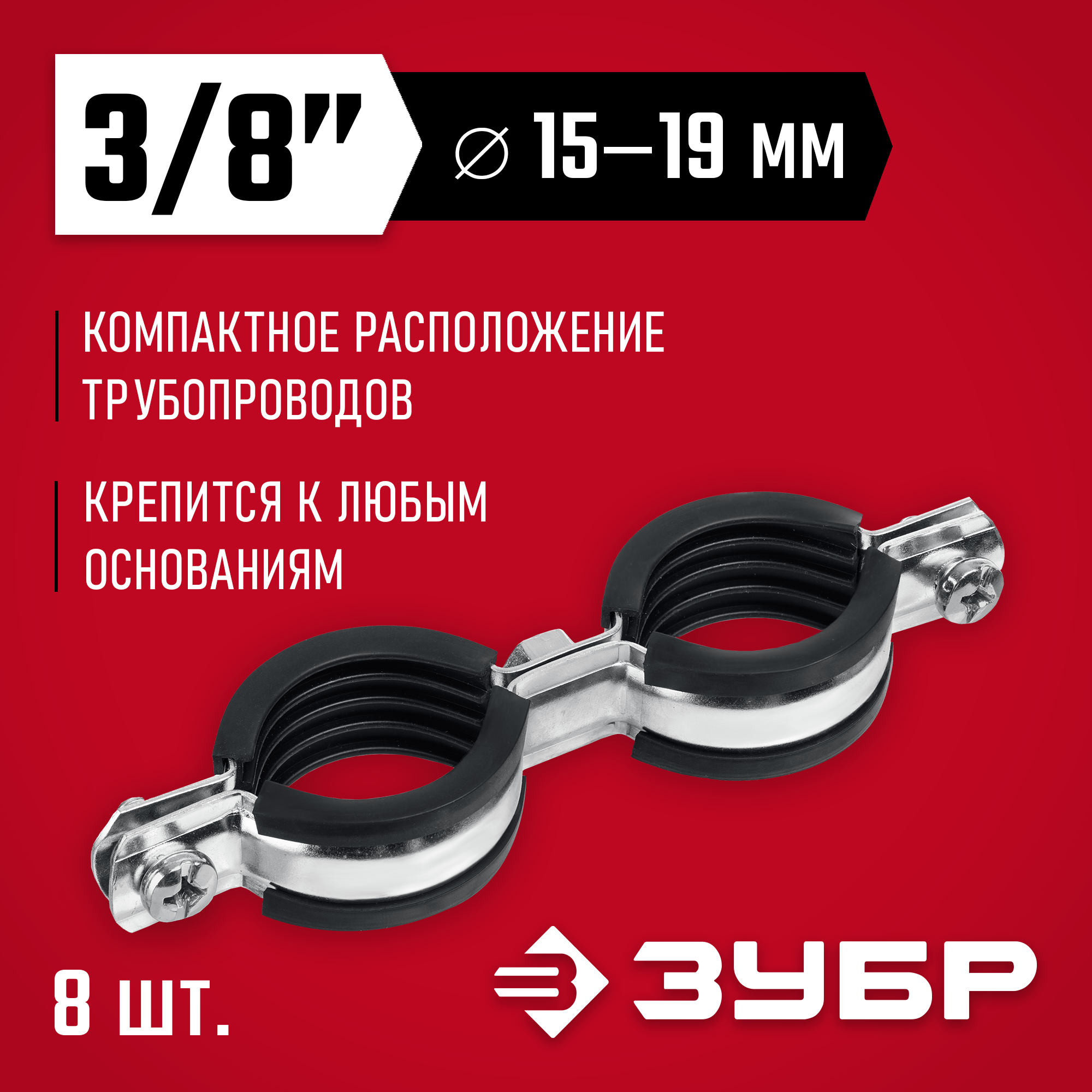 Для крепления труб различного назначения диаметром 15-19 мм при помощи шпильки с резьбой М8 (в комплект не входит)
