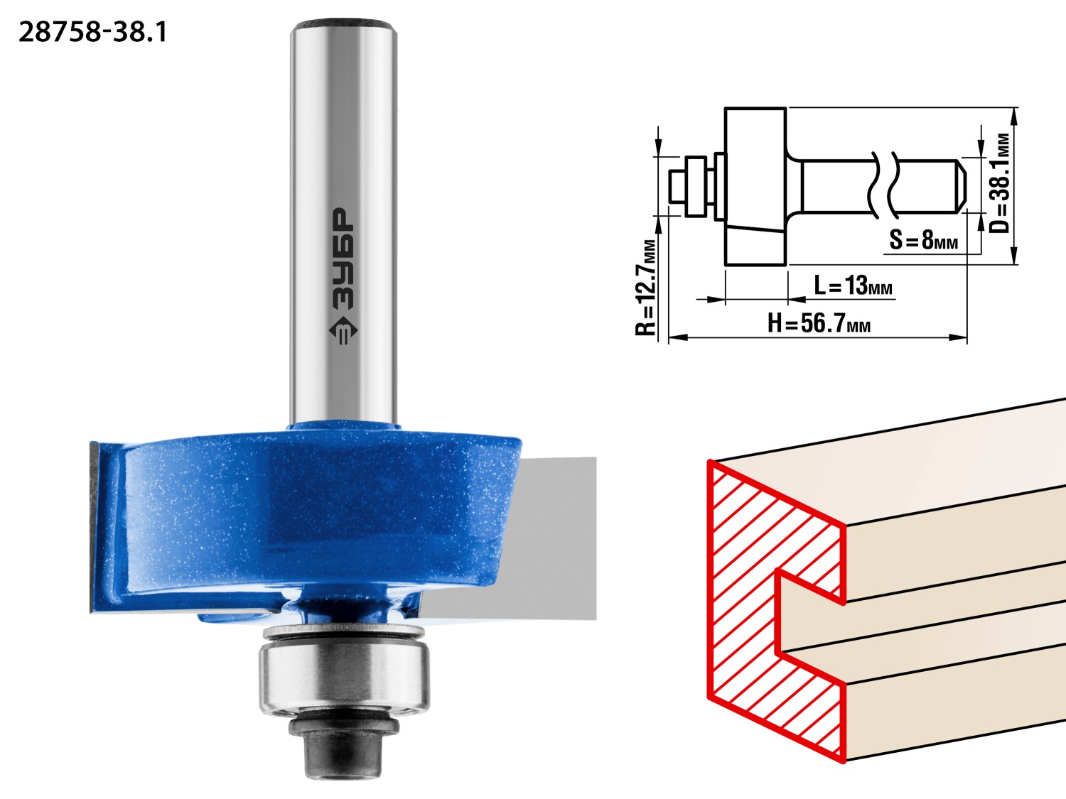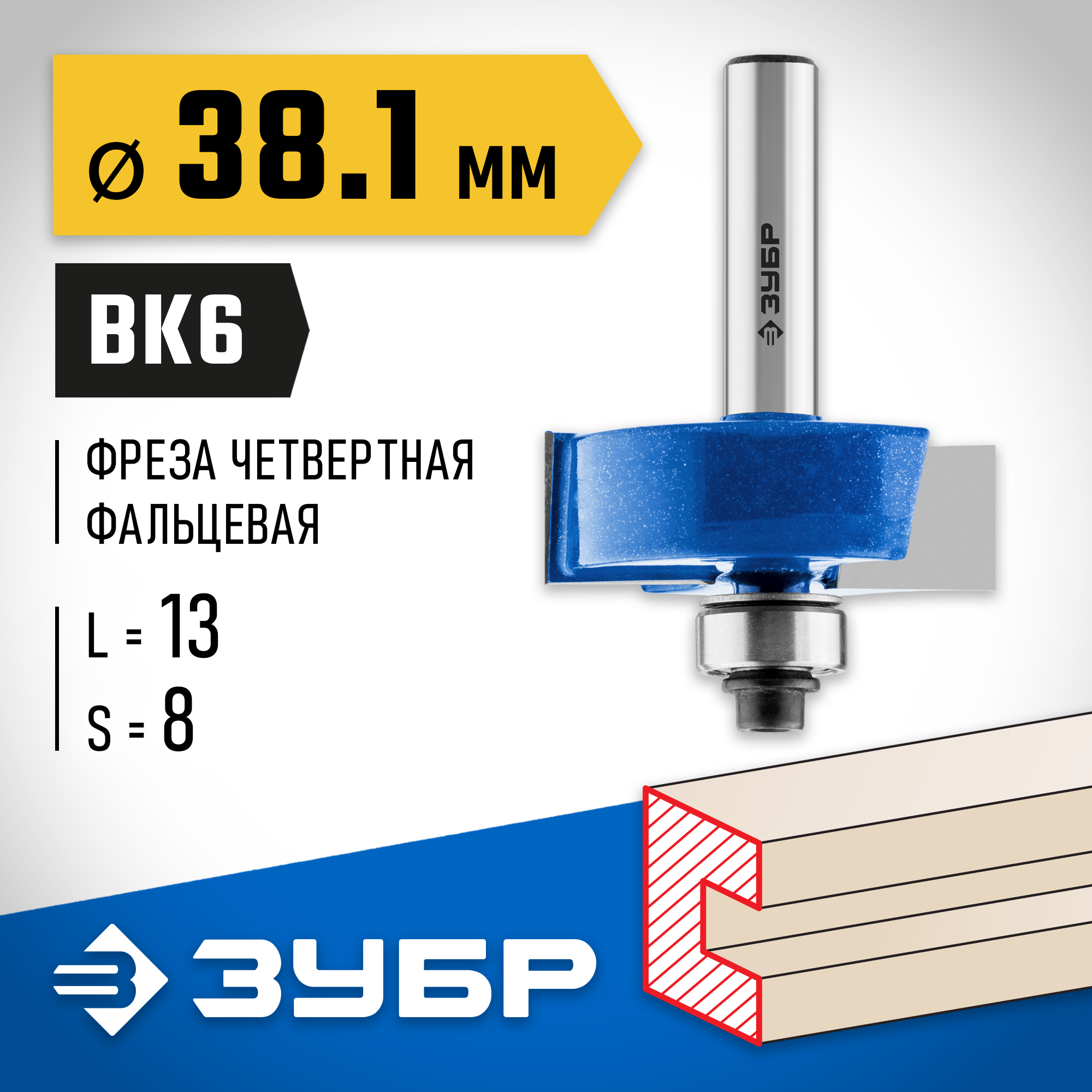 ЗУБР 38.1 x 13 мм, хвостовик 12 мм, фреза фальцевая, Профессионал (28758-38.1)