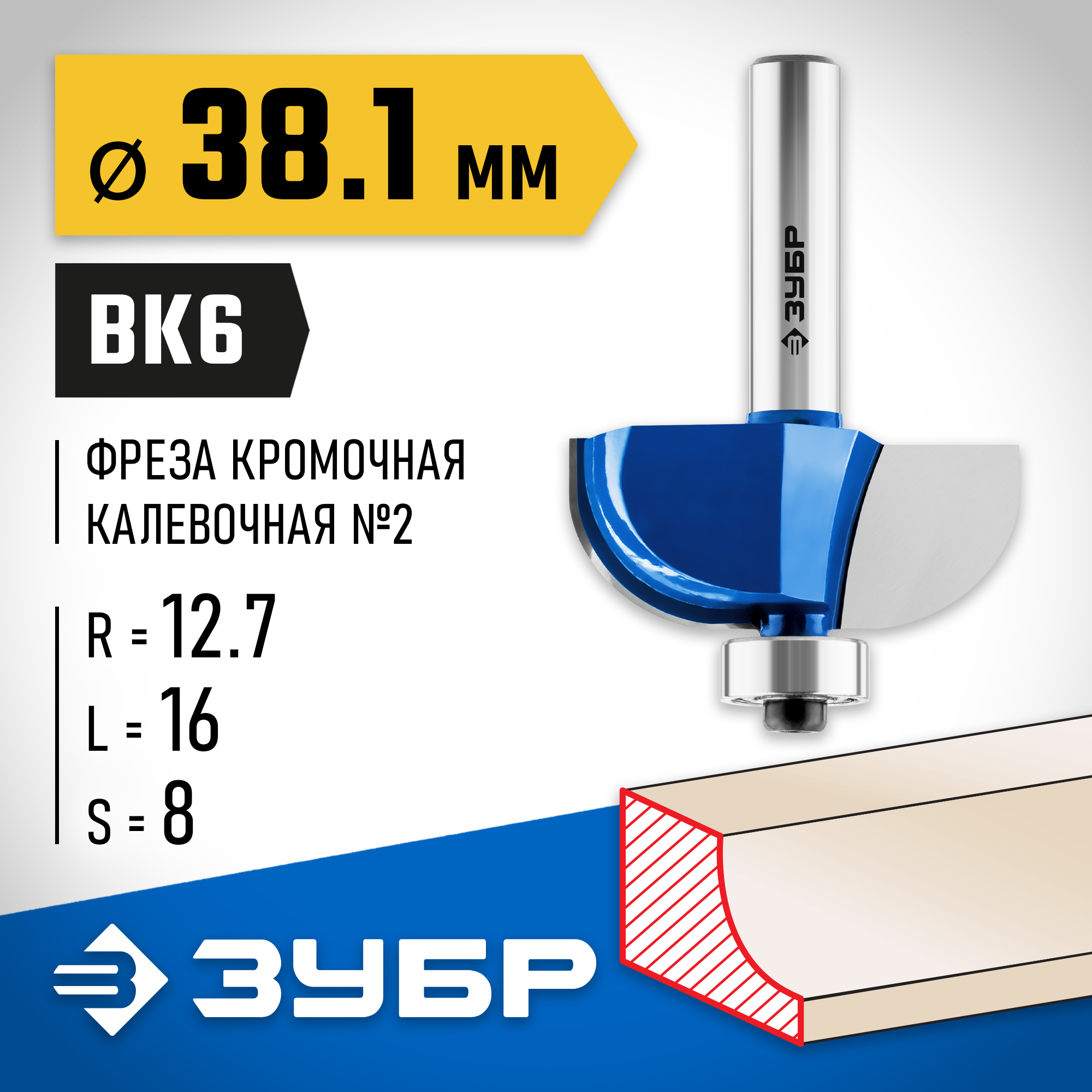 ЗУБР 38.1 x 16 мм, радиус 12.7 мм, фреза кромочная калевочная №2, Профессионал (28702-38.1)