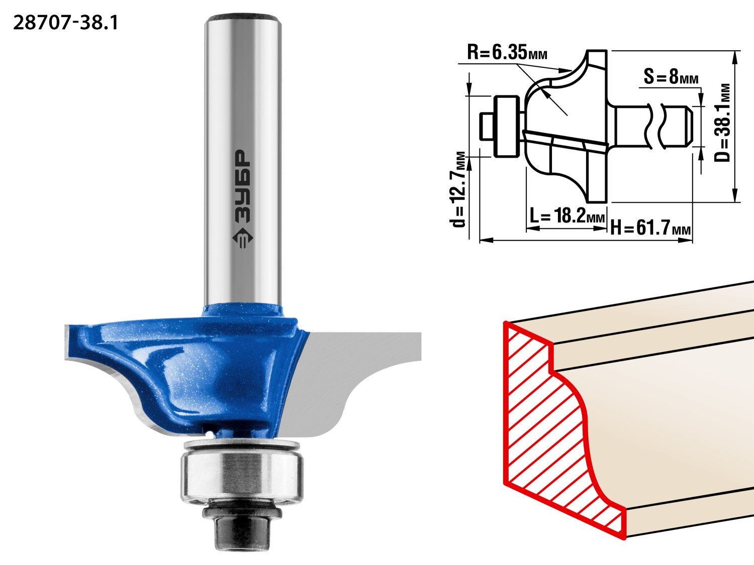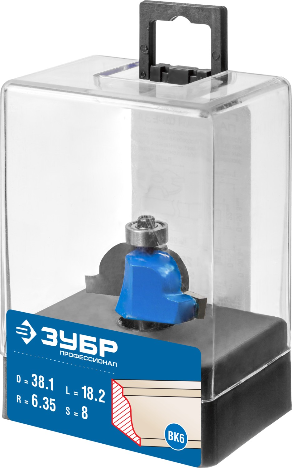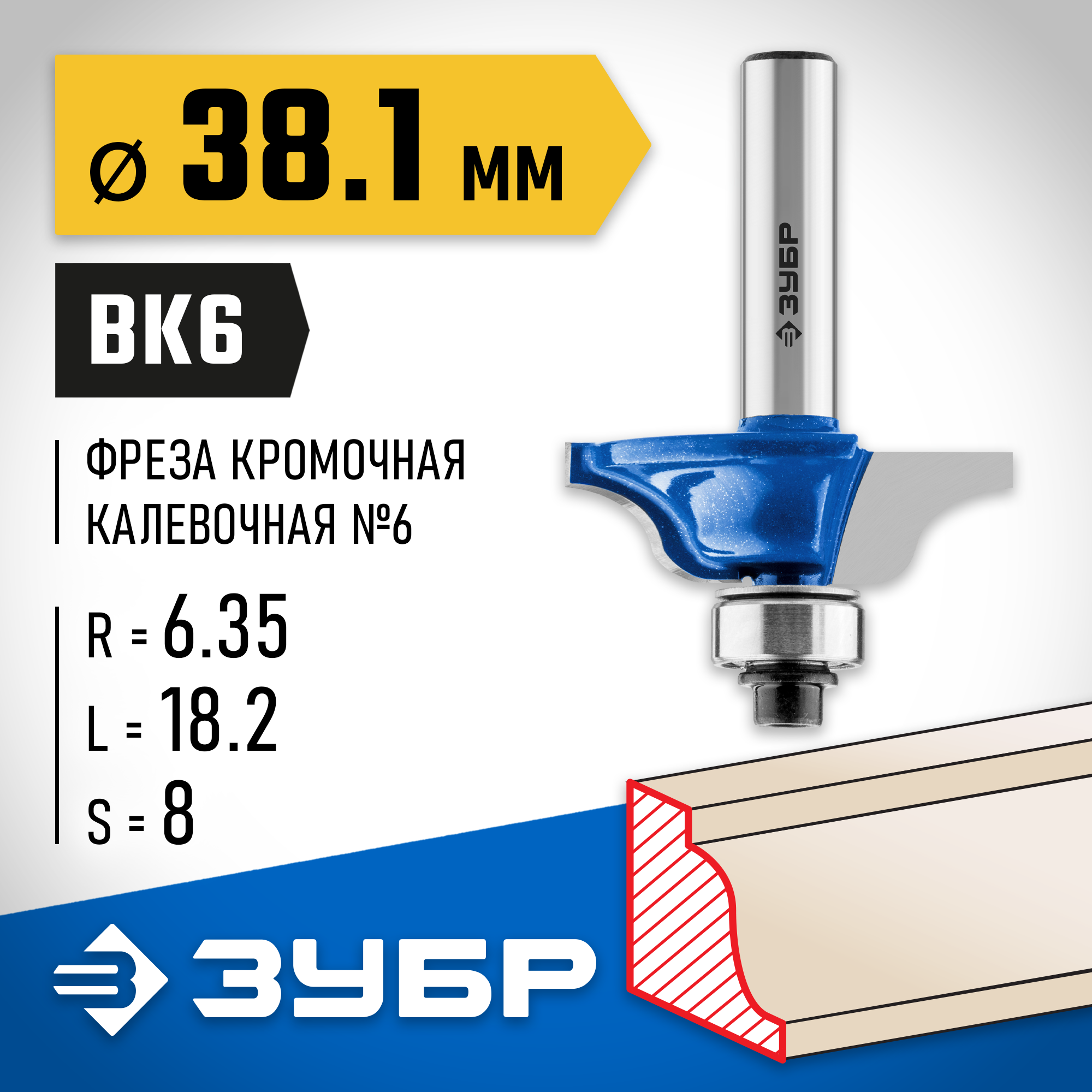 ЗУБР 38.1 x 18 мм, радиус 6.3 мм, фреза кромочная калевочная №6, Профессионал (28707-38.1)