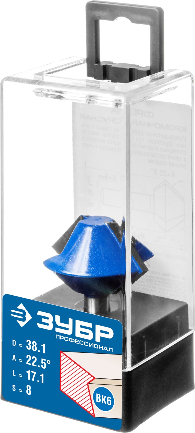 Фреза отлично подходит для получения фаски на кромках и торцах деталей при работе с различными видами древесины.